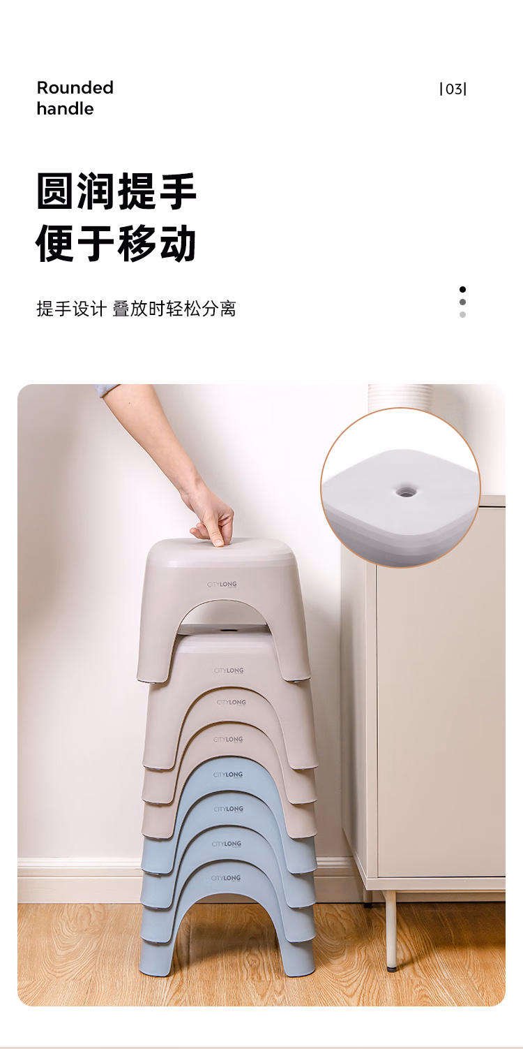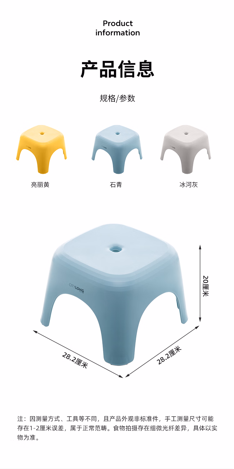 包装清单  :   禧天龙塑料凳子家用客厅加厚矮凳北欧简约商用椅子餐厅凳石青D-2132