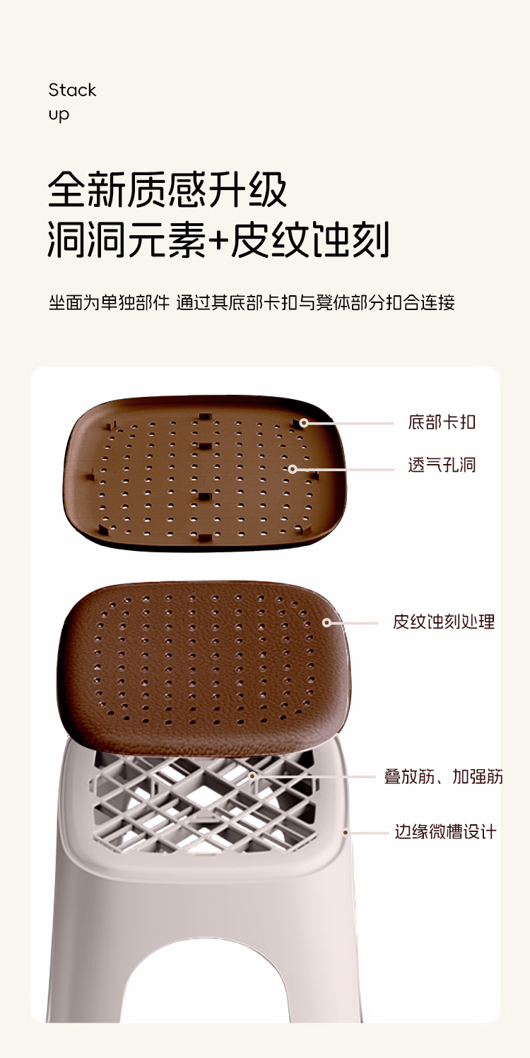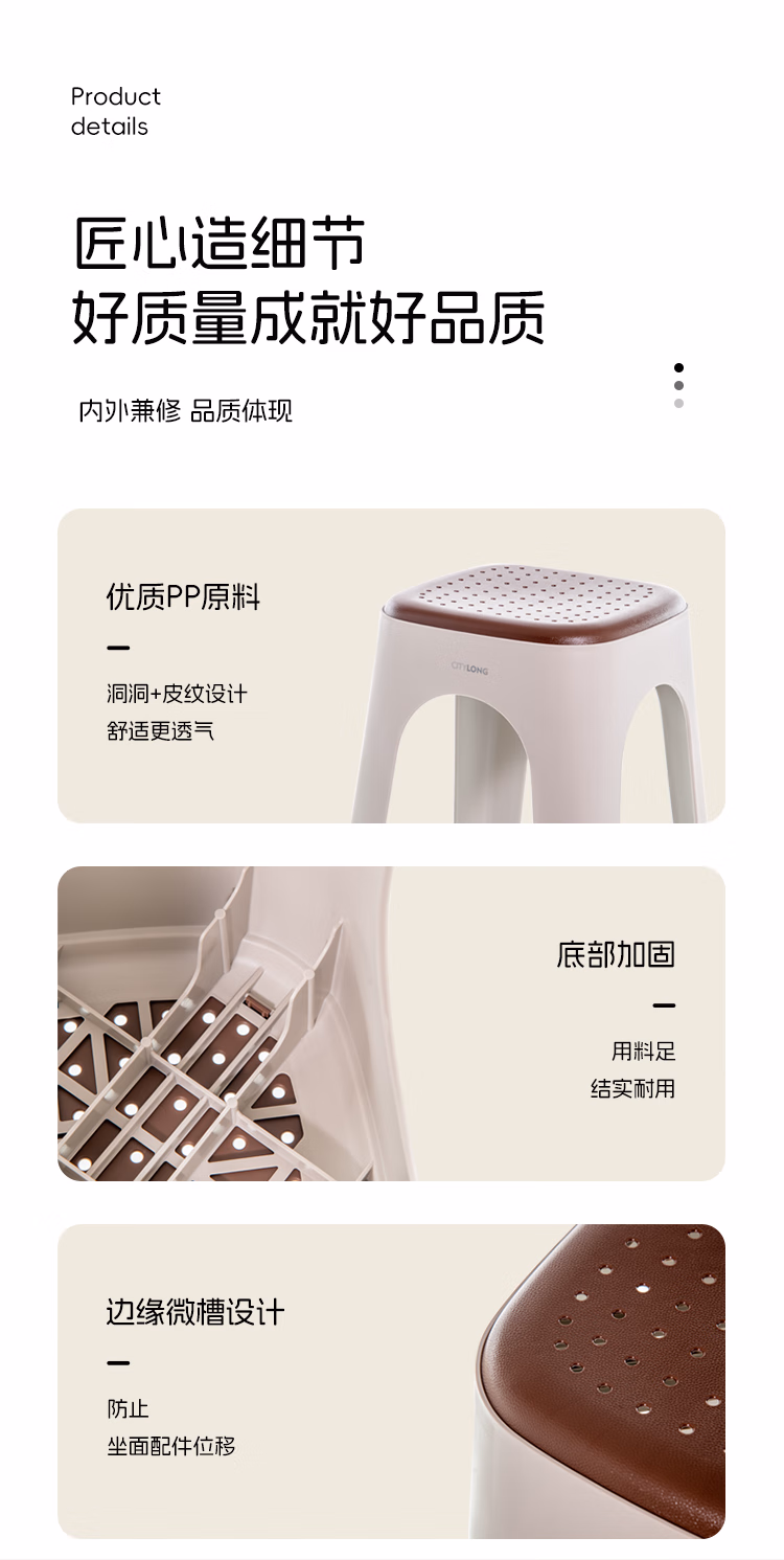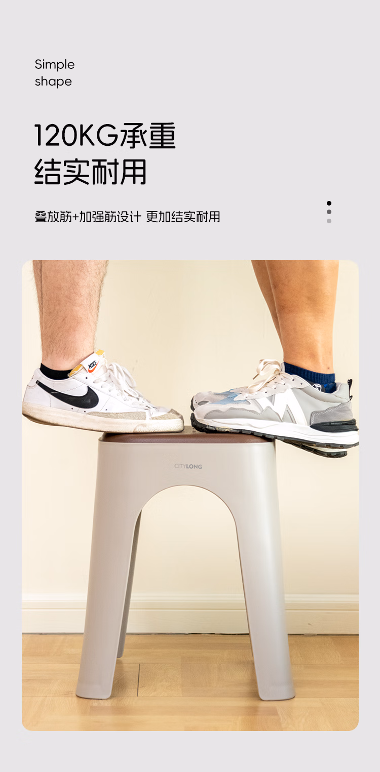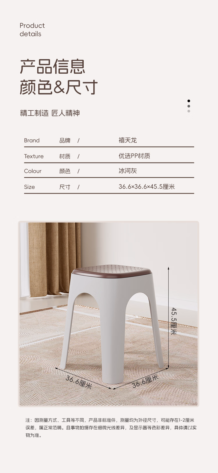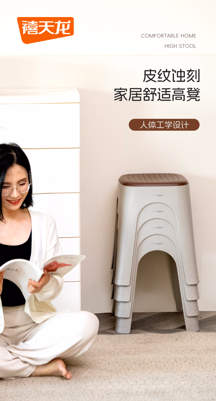 包装清单  :   禧天龙塑料凳子加厚高凳透气防滑家用客厅可叠放成人凳 灰色 1个装