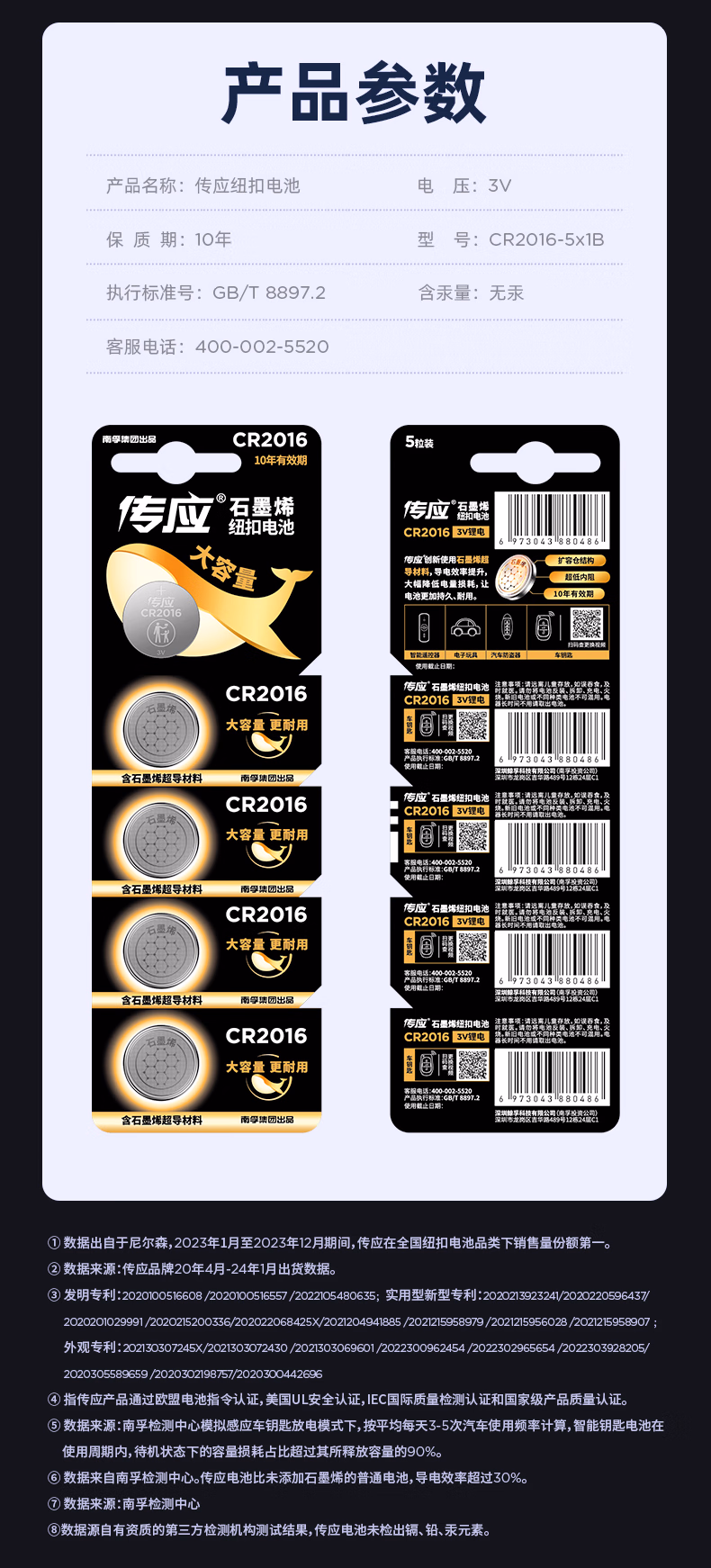包装清单  :   传应南孚传应 CR2016纽扣电池5粒 3V锂电池 适用丰田比亚迪奔驰景逸等汽车钥匙遥控器等cr2016