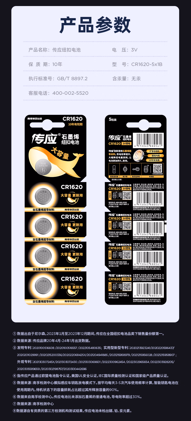 包装清单  :   传应南孚CR1620纽扣电池5粒 3V锂电池适用马自达世嘉标致等汽车钥匙遥控器等cr1620