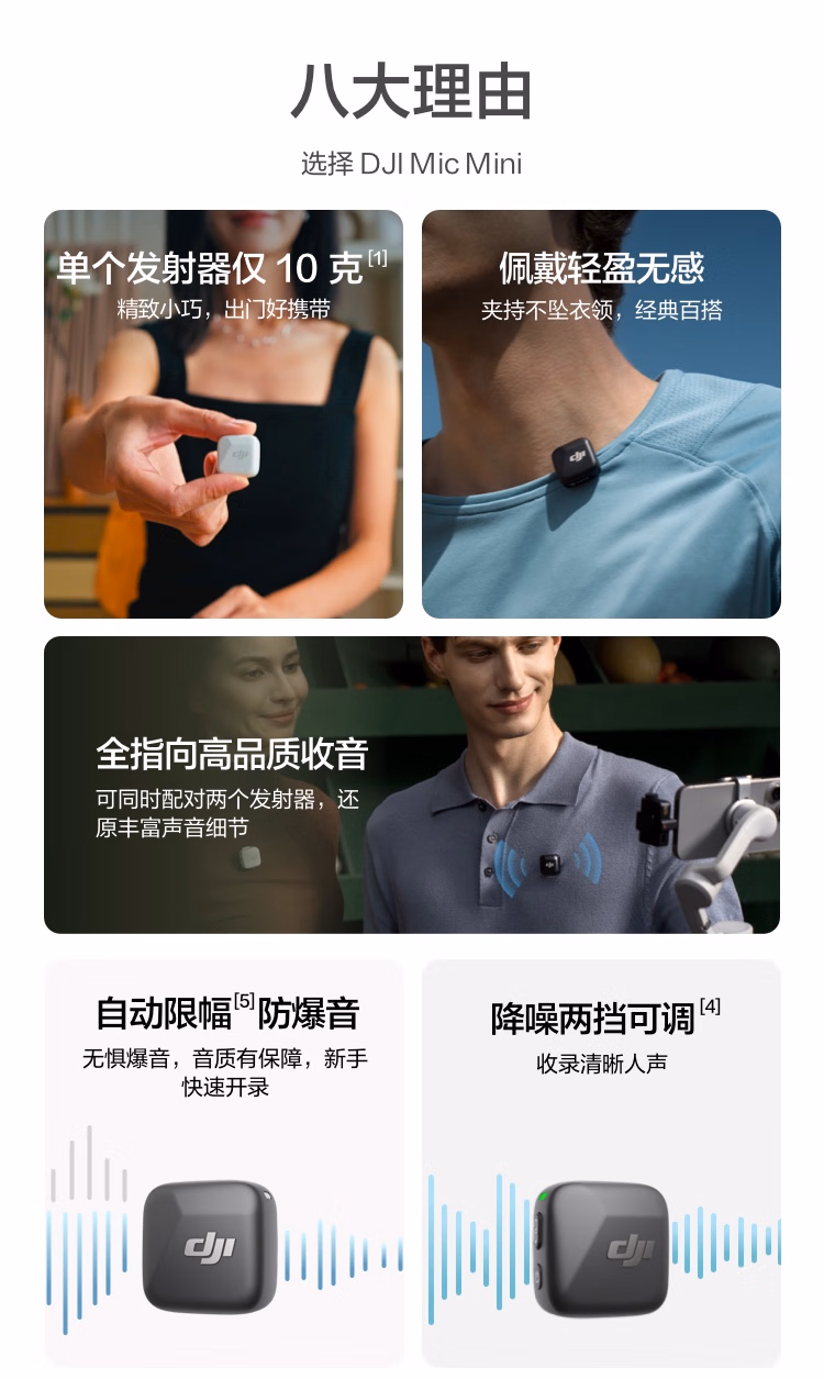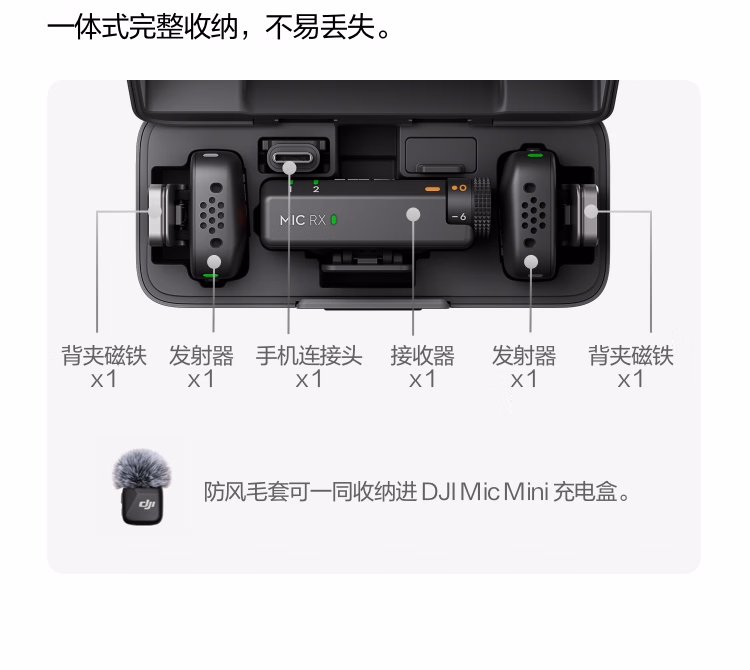 包装清单  :   大疆 DJI Mic Mini 迷你无线高品音质降噪领夹麦克风【安卓+苹果15/16/17系列+相机】相机版 一拖二