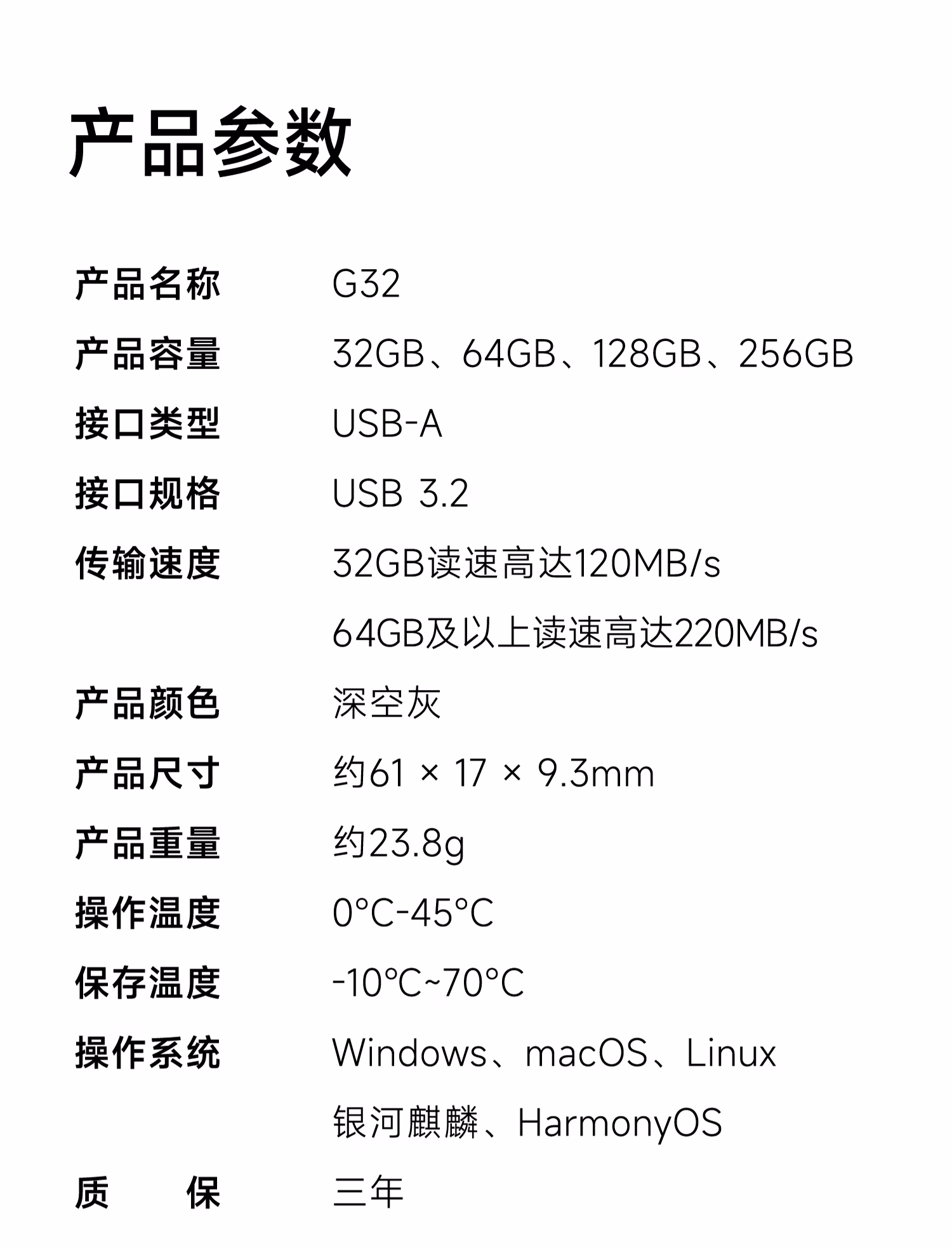 包装清单  :   爱国者(aigo)256GB USB3.2 U盘G32 读速220MB/s 高速电脑办公u盘 金属便携U盘