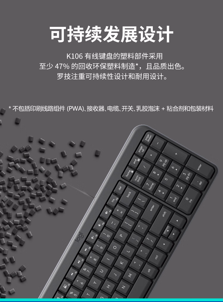 包装清单  :   罗技(Logitech)K106 键盘 有线键盘 办公键盘 紧凑型 黑色