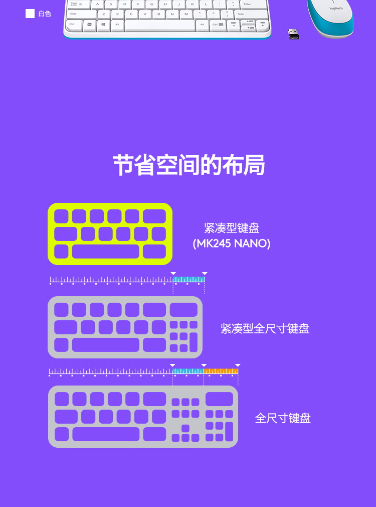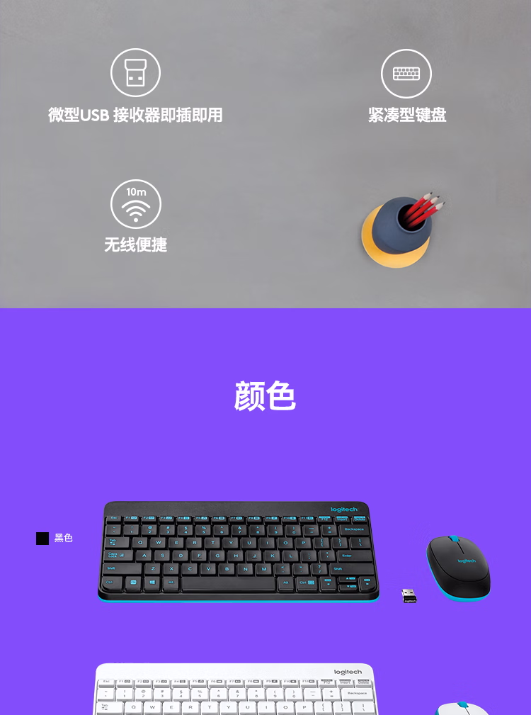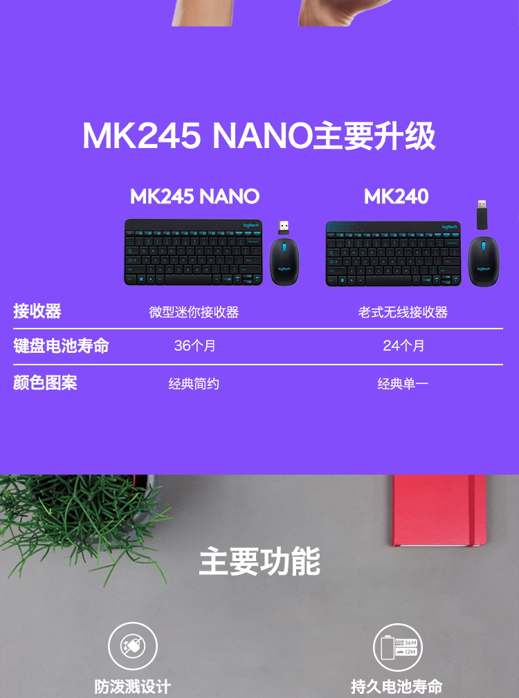 包装清单  :   罗技(Logitech)MK245 Nano 键鼠套装 无线键鼠套装 办公键鼠套装 紧凑型 可调支架 带无线2.4G接收器 黑
