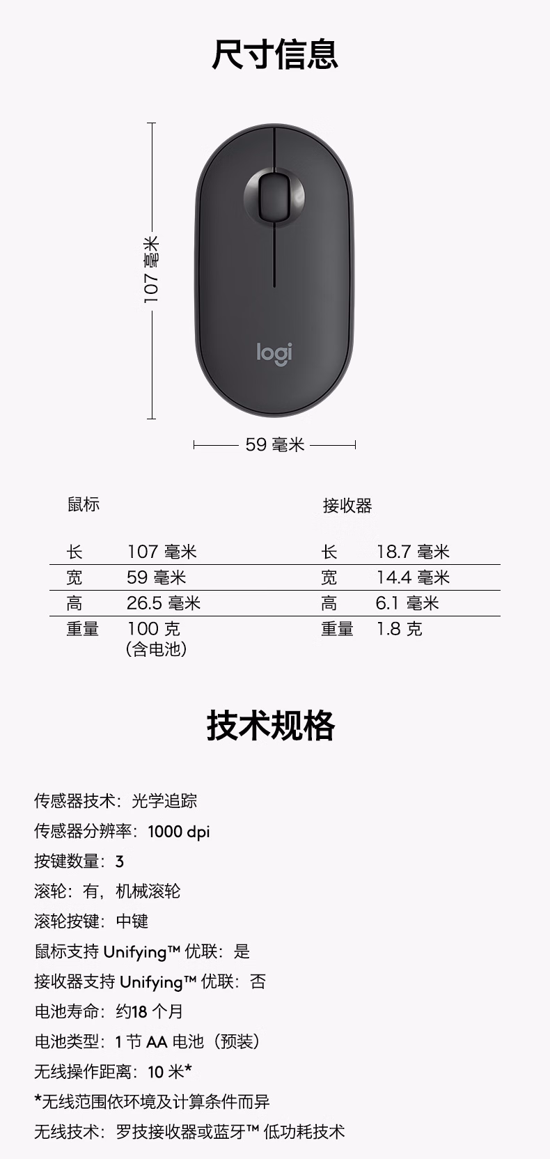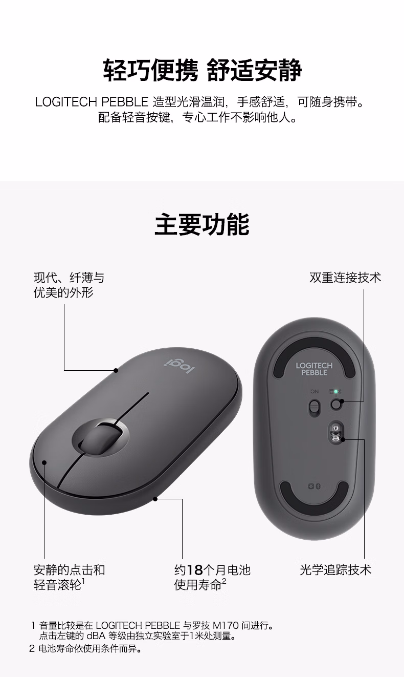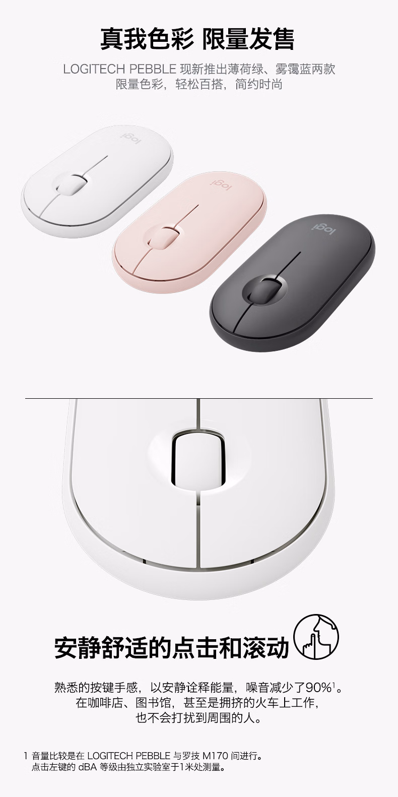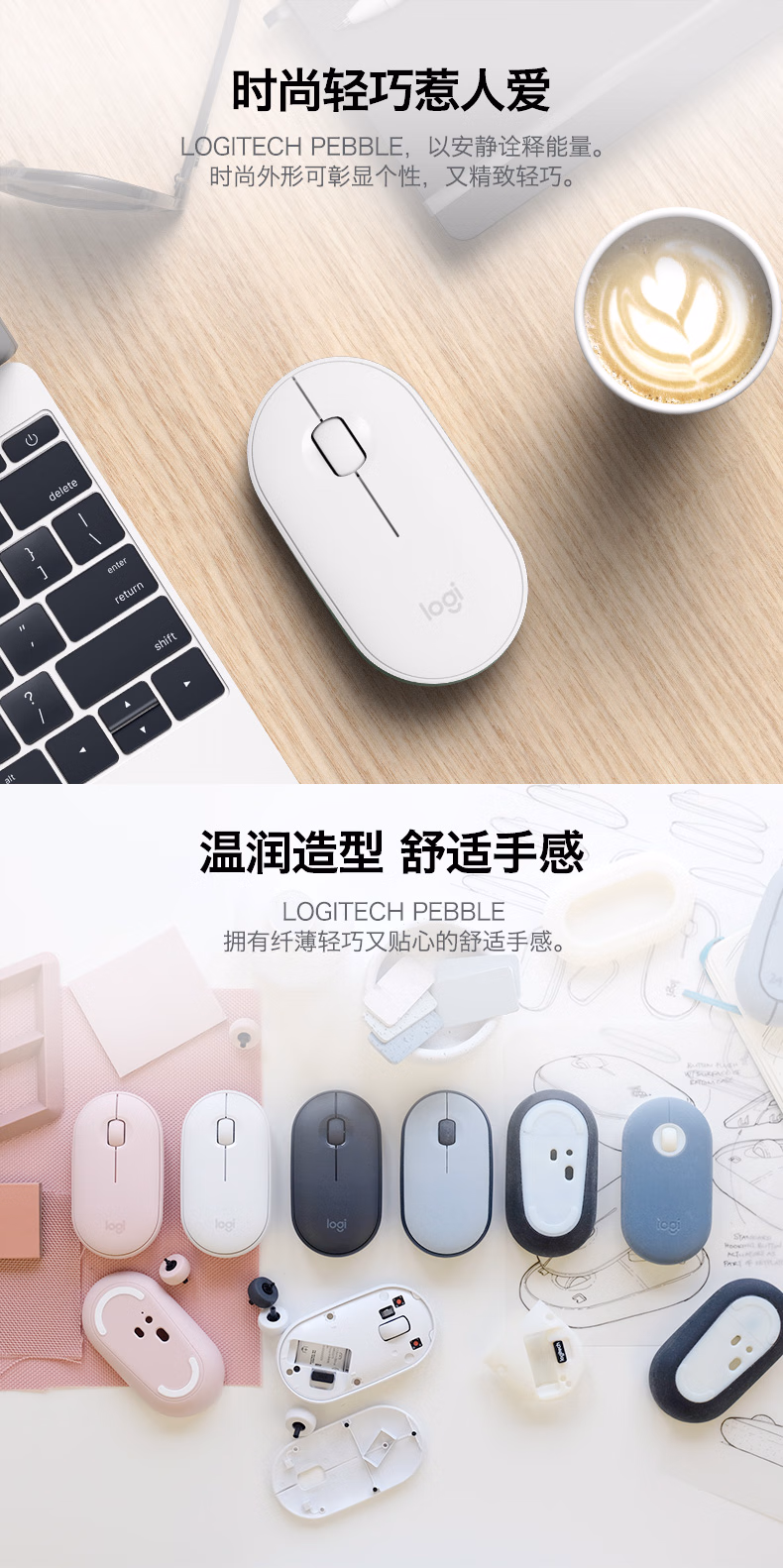 包装清单  :   罗技(Logitech)时尚系列 PEBBLE鼠标 无线蓝牙鼠标 办公静音鼠标 女性鼠标对称鼠标 鹅卵石造型 石墨黑