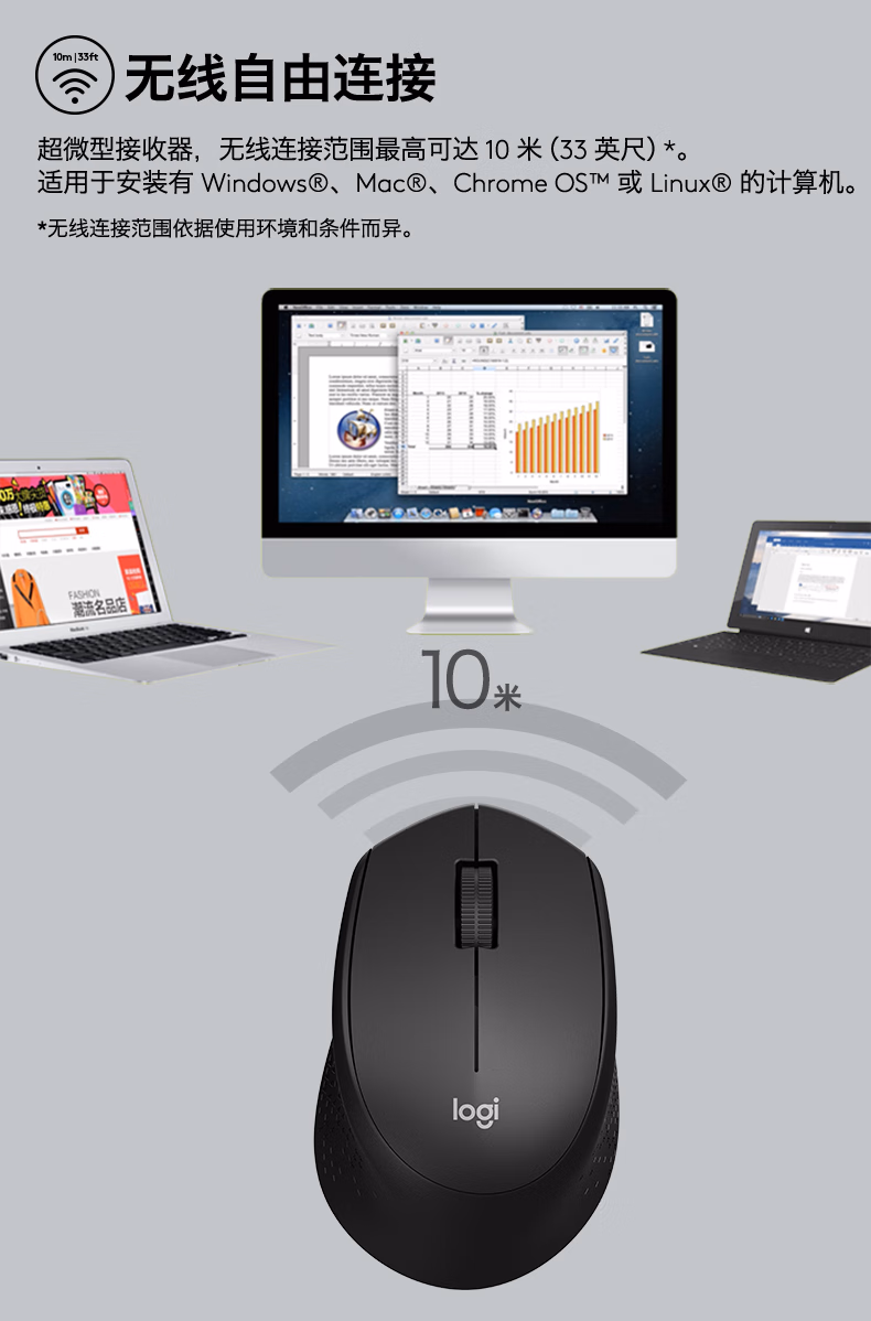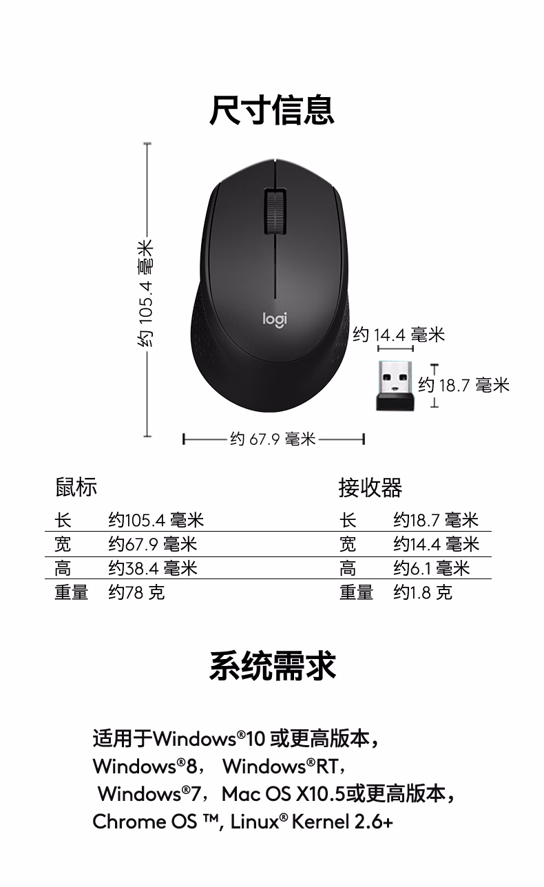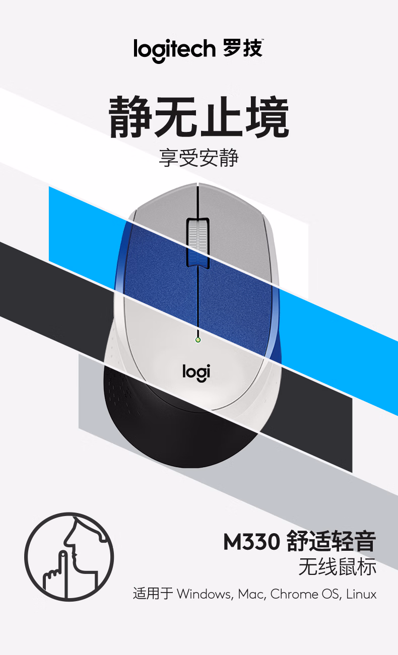 包装清单  :   罗技(Logitech)M330 静音鼠标 无线鼠标 办公鼠标 右手鼠标 带无线微型接收器 黑色