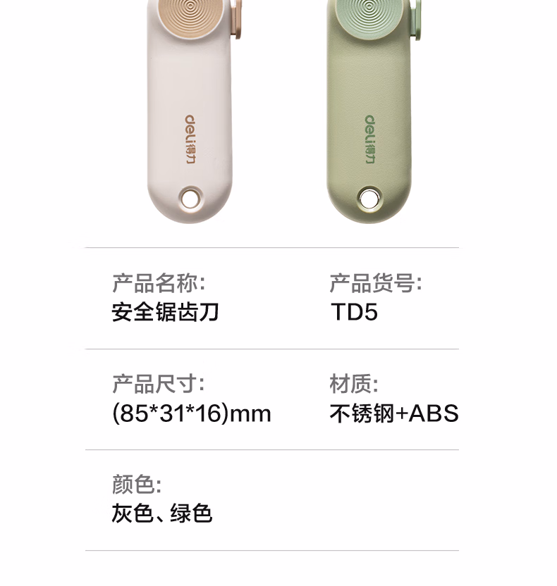 包装清单  :   得力(deli)创意便携美工刀小号锯齿刀裁纸刀快递开箱神器黑刃防锈 学生安全开箱刀可锯可割办公用品 TD5灰