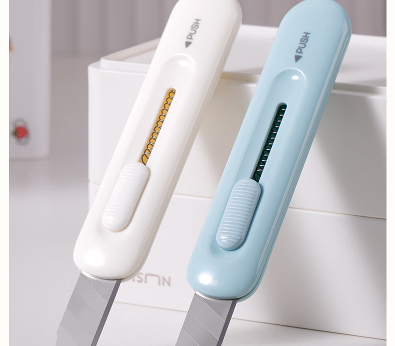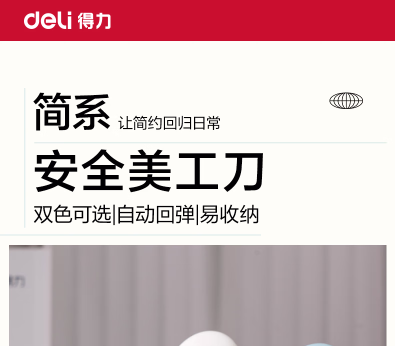 包装清单  :   得力(deli) 迷你随身美工刀壁纸刀片开箱拆快递刀小刀 不锈钢耐用自动回弹 学生美术办公用品裁纸刀 JX556白