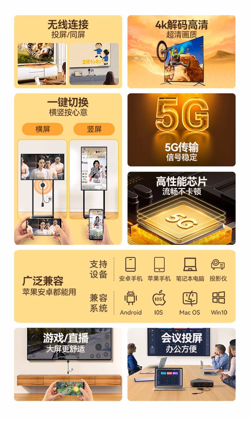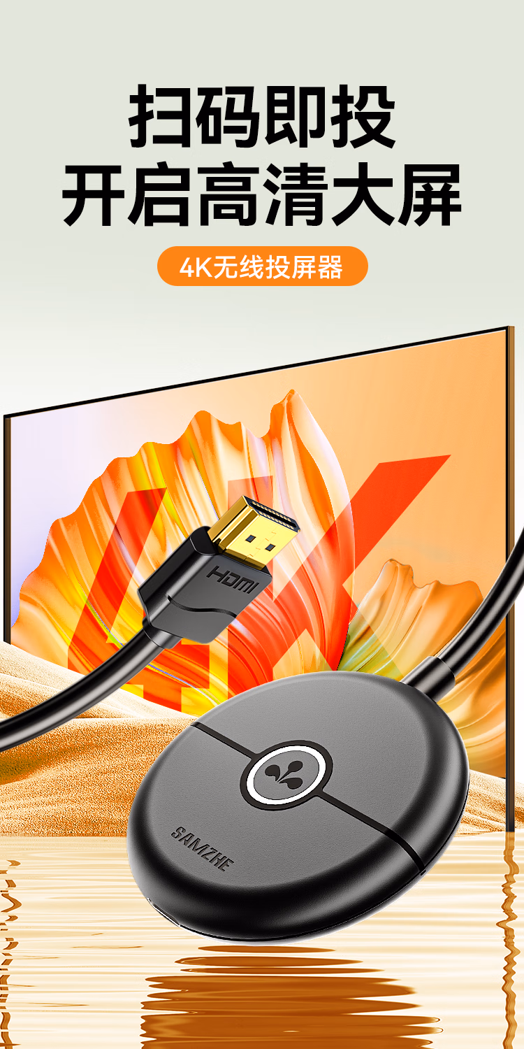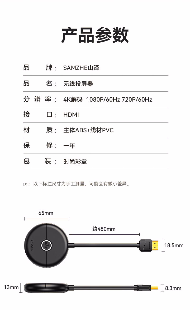包装清单  :   山泽 手机无线投屏器 4K高清HDMI音视频同屏传输器 适用苹果安卓华为手机电脑电视显示器投影仪WP02