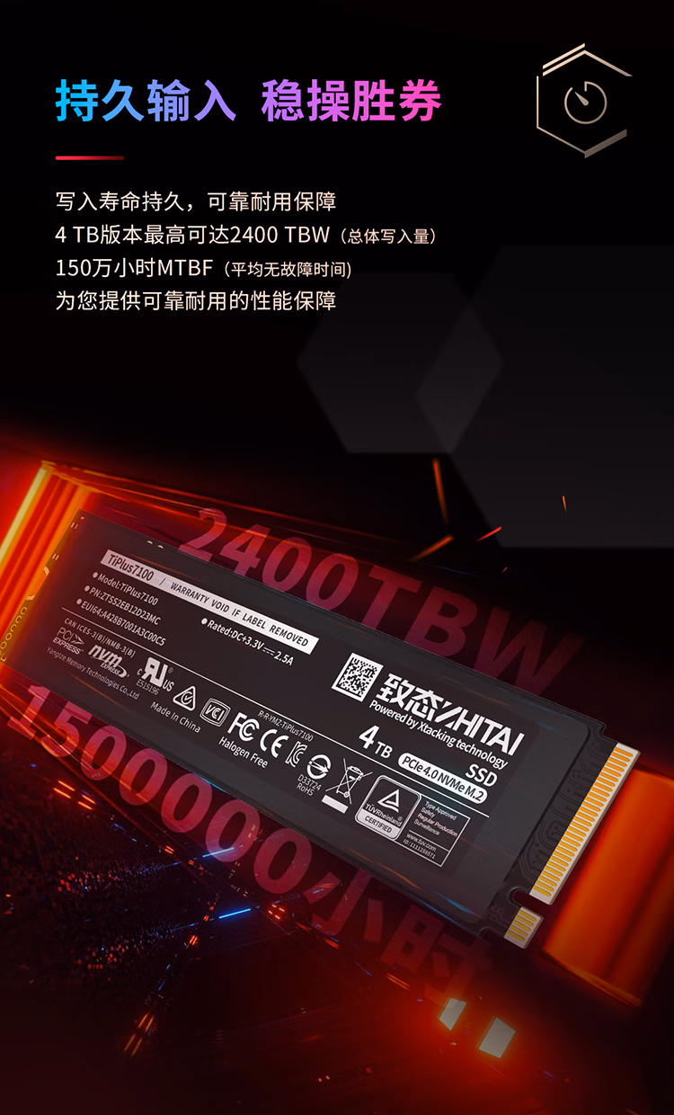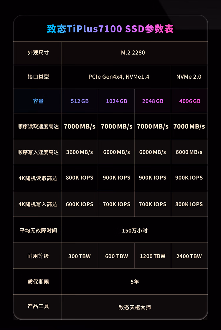 包装清单  :   致态(ZhiTai)长江存储 2TB SSD固态硬盘 NVMe M.2接口 TiPlus7100系列