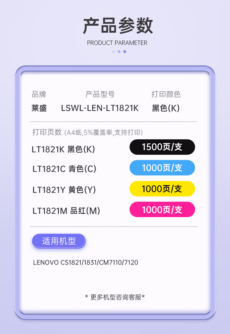 包装清单  :   莱盛LSWL-LEN-LT1821K 彩色黑色硒鼓粉仓芯片款适用 联想 LENOVO CS1821/1831,CM7110/7120