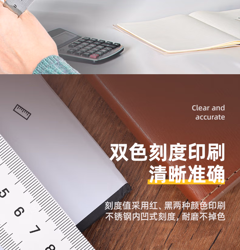 包装清单  :   得力(deli)不锈钢直尺刻度尺公制刻度绘图钢尺60cm