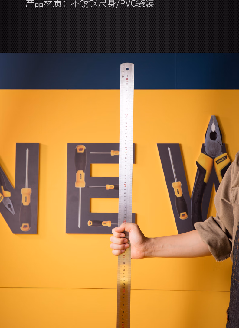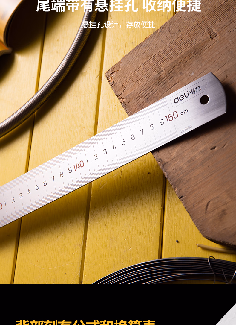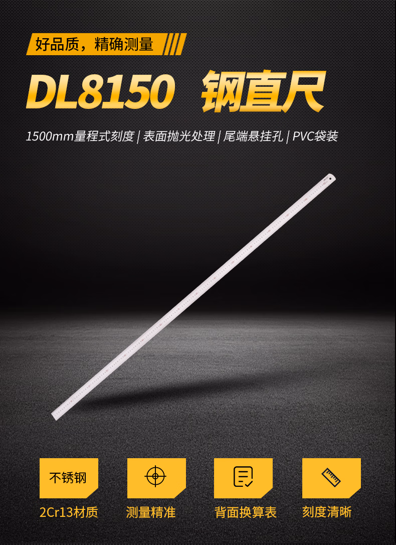 包装清单  :   得力(deli)不锈钢直尺刻度尺公制刻度绘图钢尺150cm