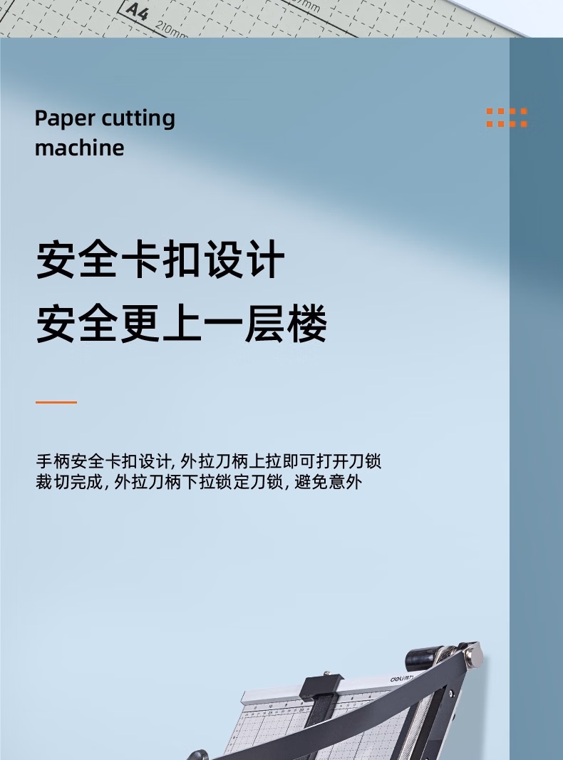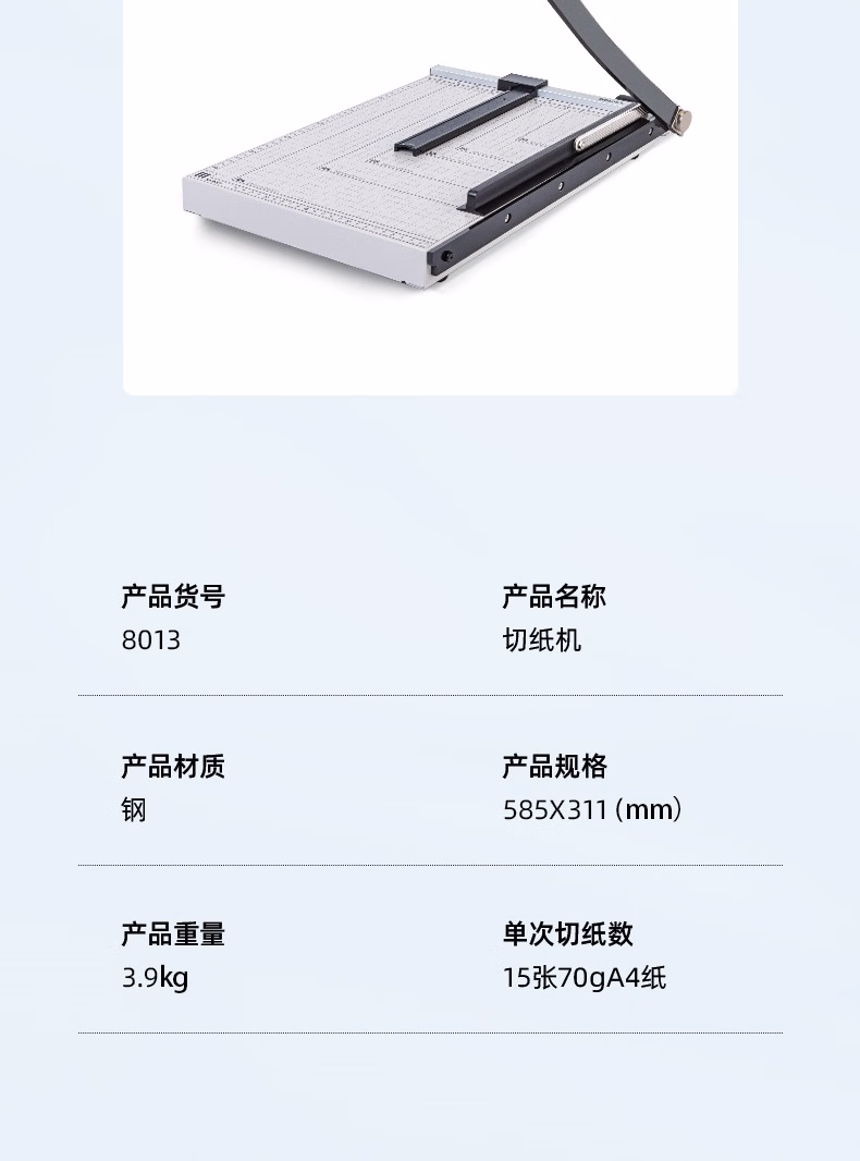 包装清单  :   得力 B4钢制切纸机 小型裁纸机切卡机裁纸刀名片切割机厚层纸张书本照片切书A4可用 380×300mm 8013