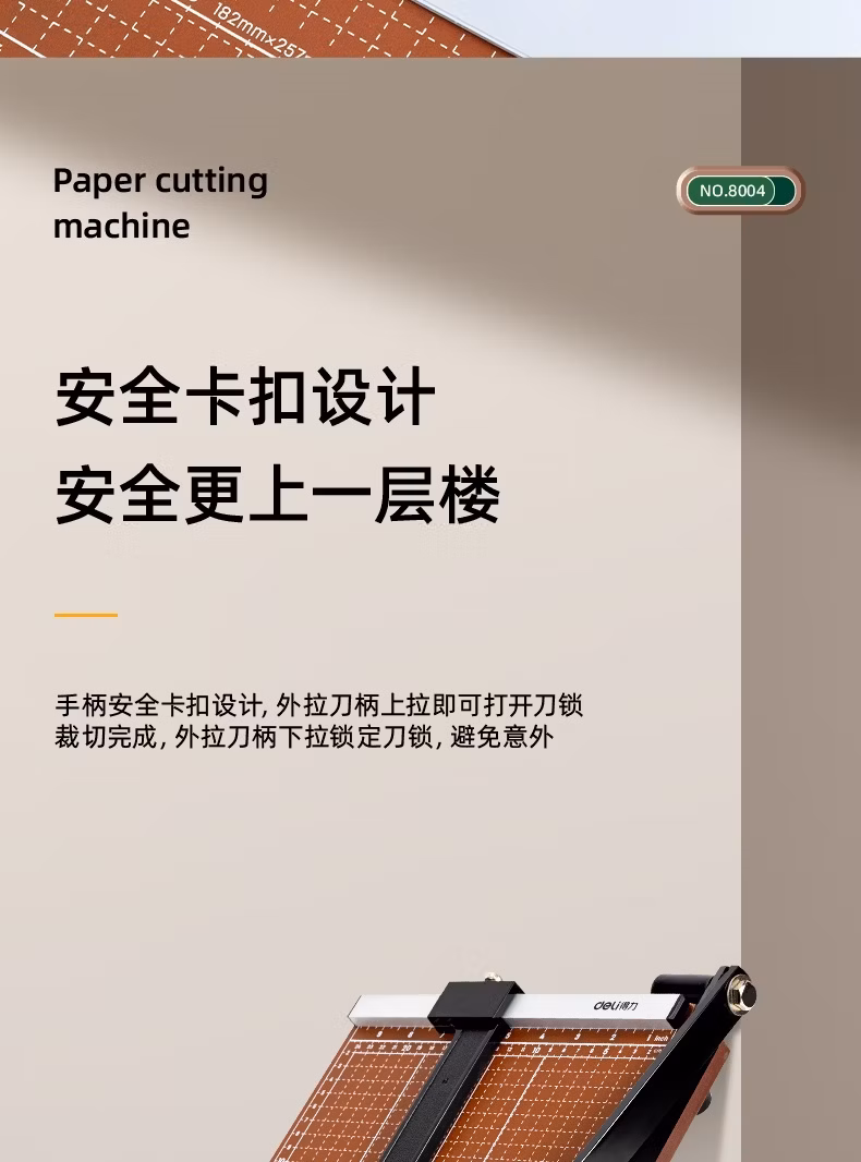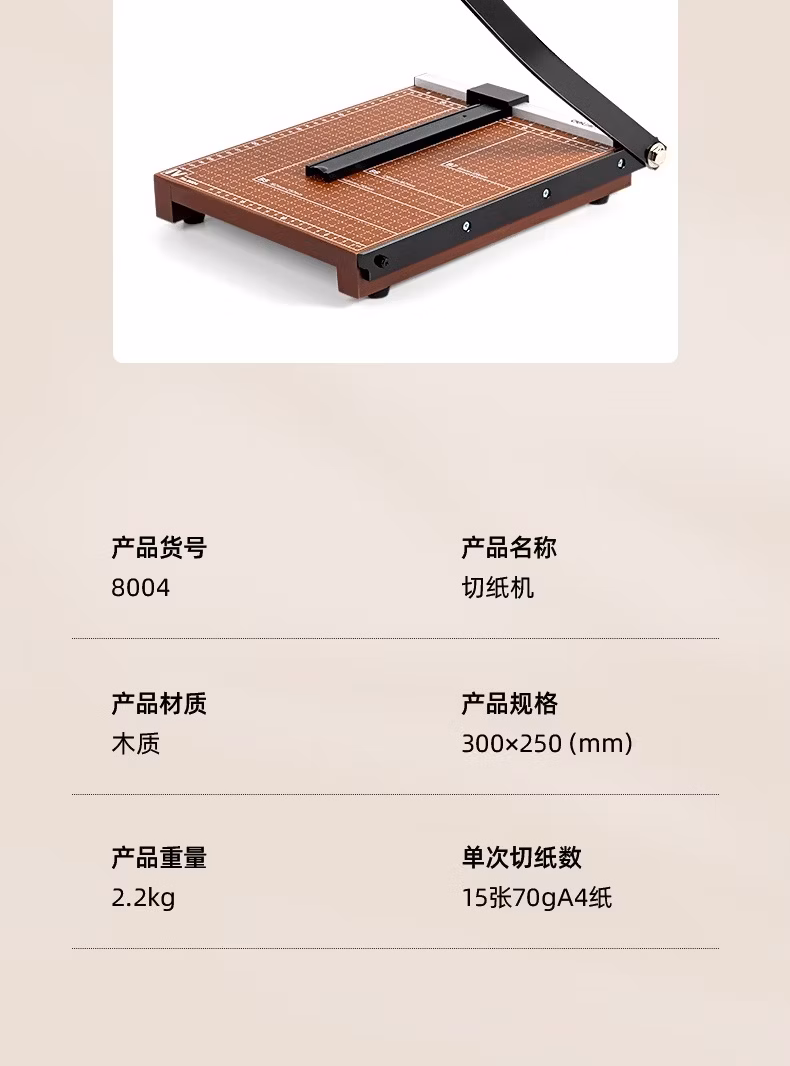 包装清单  :   得力A4木制切纸机 切纸刀裁纸刀裁纸机铡纸刀切割神器书本办公室照片小型单次15张纸300×250mm 8004
