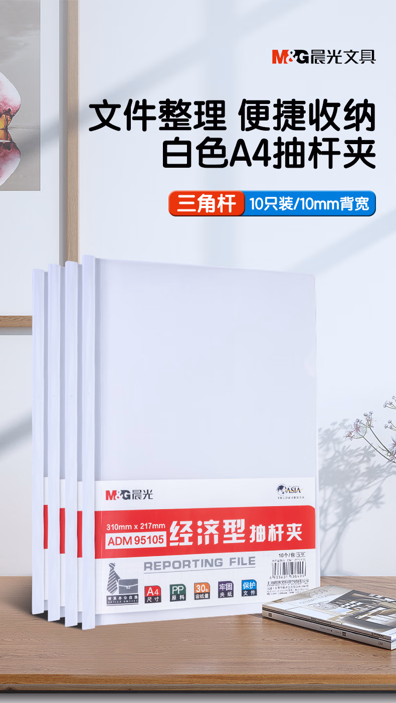 包装清单  :   晨光(M&G)文具 10个装A4/10mm办公抽杆夹拉杆夹资料夹 透明文件夹试卷收纳 会议报告夹ADM95105