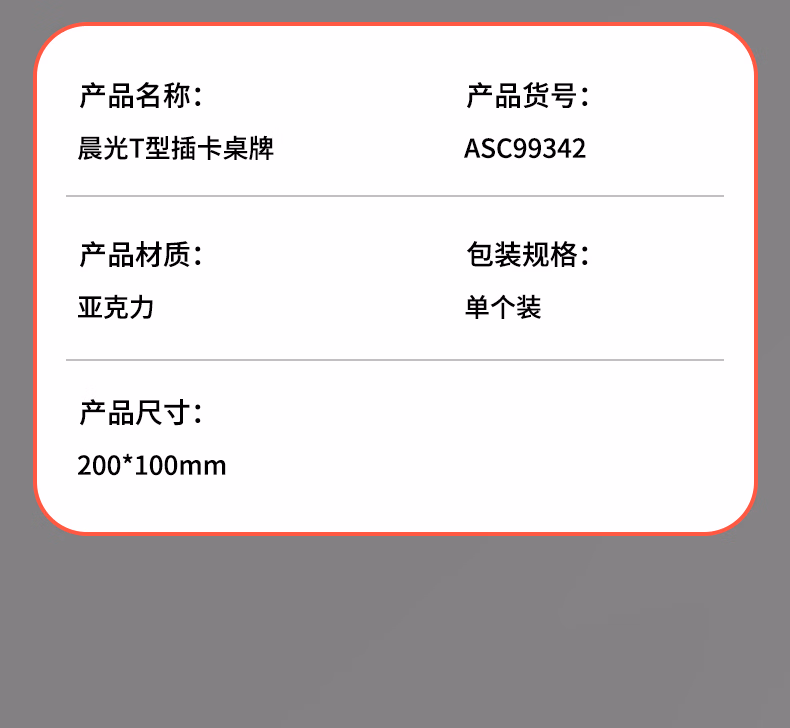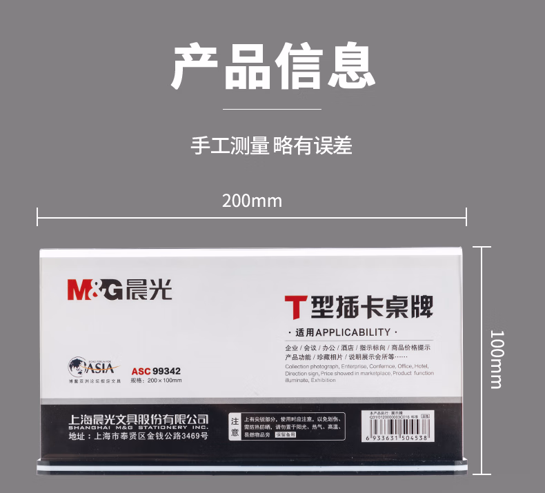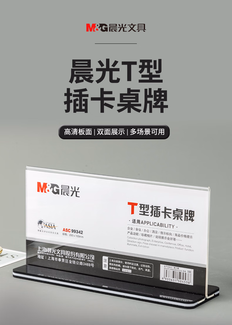 包装清单  :   晨光(M&G)T型桌牌亚克力会议姓名牌 强磁台签座位牌台牌台卡办公文具200*100mm横式抽拉式1个ASC99342