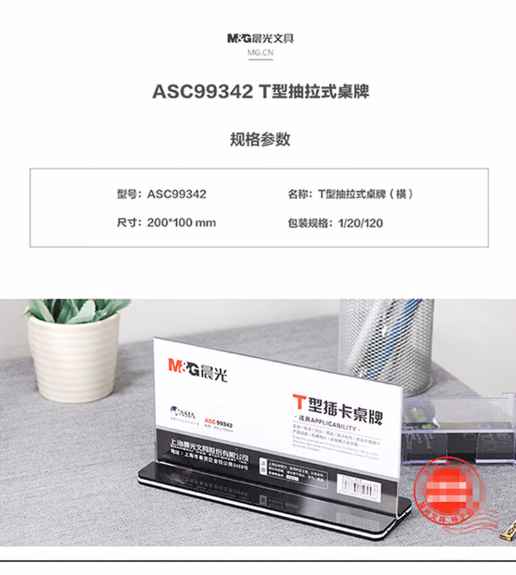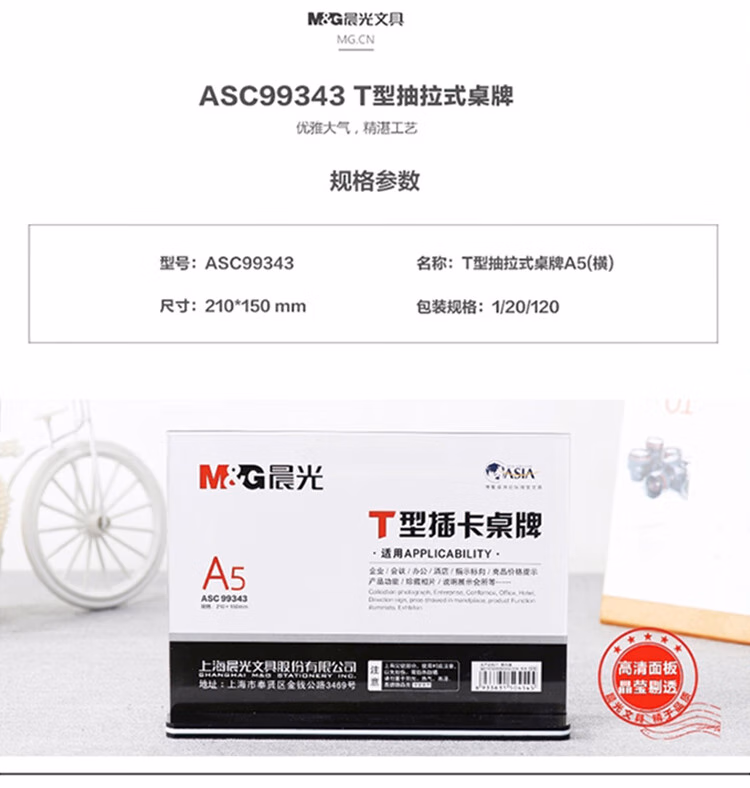 包装清单  :   晨光(M&G)T型强磁亚克力台卡台签 A4会议桌牌席位卡 座位牌广告展示牌 单个装 ASC99338