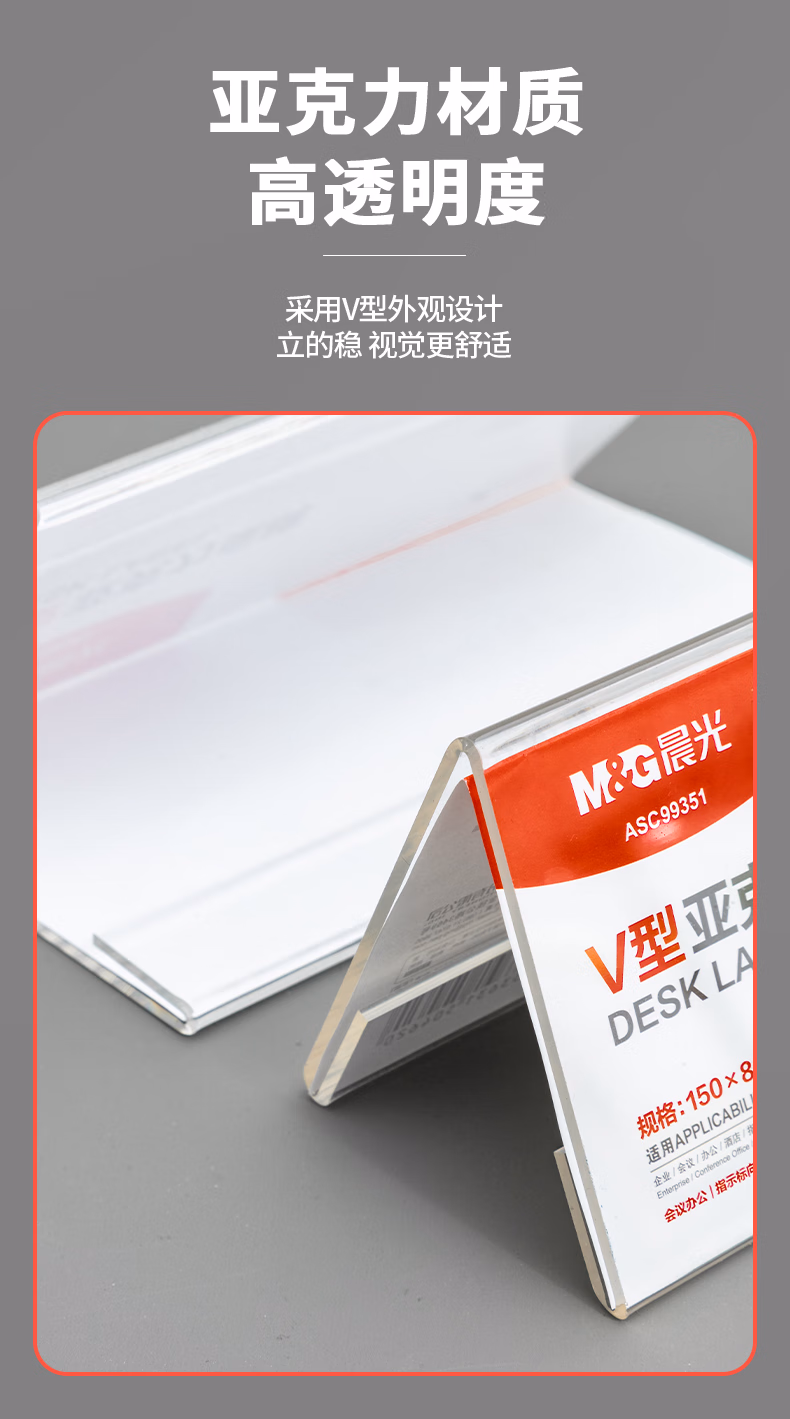 包装清单  :   晨光(M&G)V型台卡亚克力桌牌 台签会议席位卡座位牌广告展示牌150*80mm单个装ASC99351