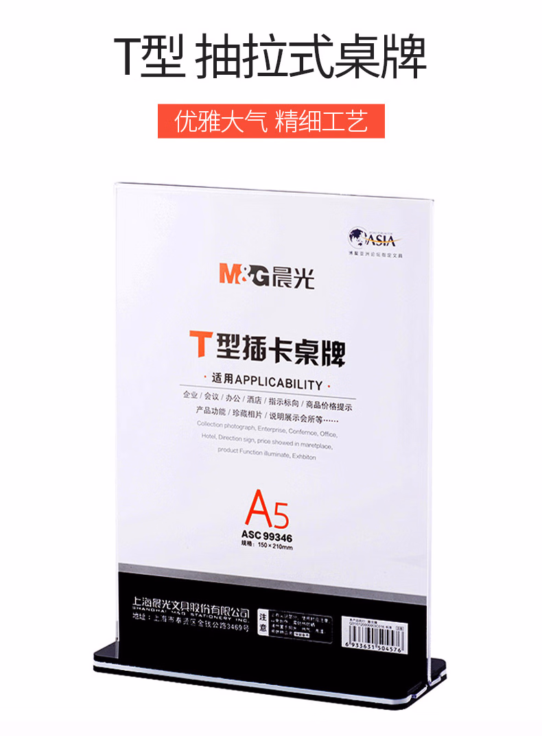 包装清单  :   晨光(M&G)T型桌牌 台牌立式台签透明桌面立牌 A4台卡亚克力板竖牌座位牌展示牌 办公用品 ASC99347 单个装