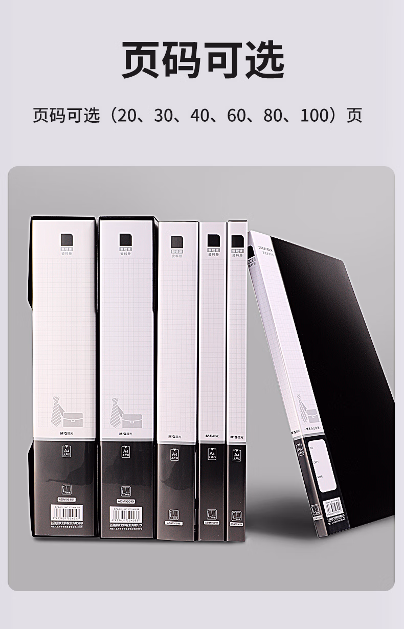 包装清单  :   晨光(M&G)a4黑色资料册透明插页档案夹收纳册100页ADM95101档案整理办公用品合同夹试卷夹奖状收集册1本装
