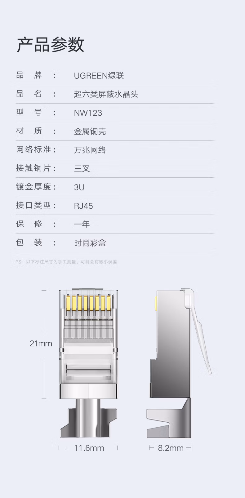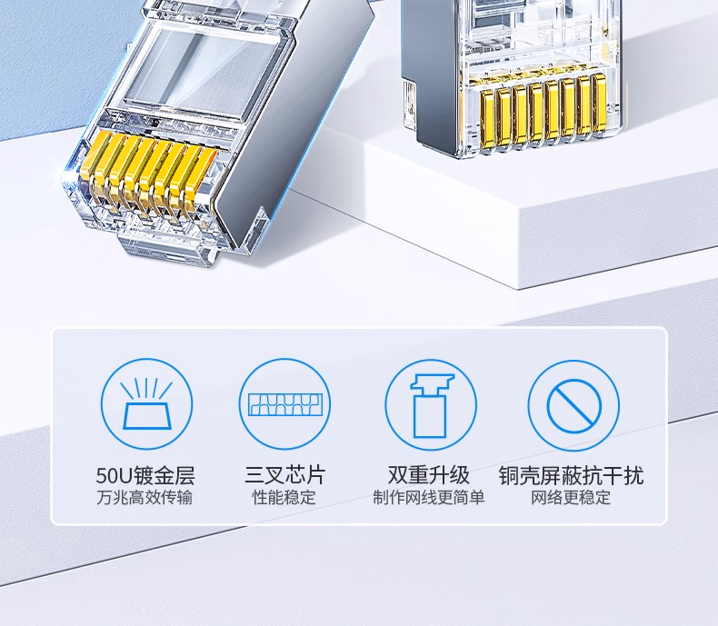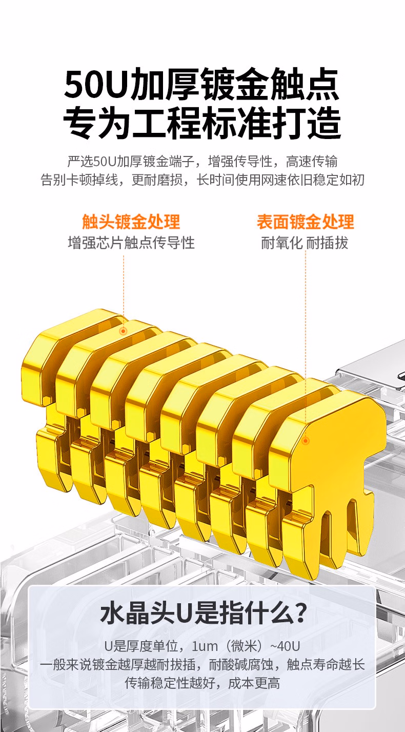 包装清单  :   超六类网线屏蔽水晶头 超6类万兆网络接头 镀金工程级RJ45电脑网线连接器CAT6A两件式接头 10个