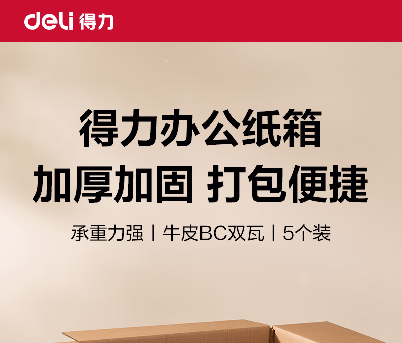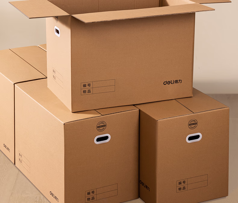 包装清单  :   得力(deli)搬家纸箱 加厚特大号纸箱子快递打包箱收纳箱整理箱包装纸壳箱 80*50*60cm【有扣手-5个装】PK145