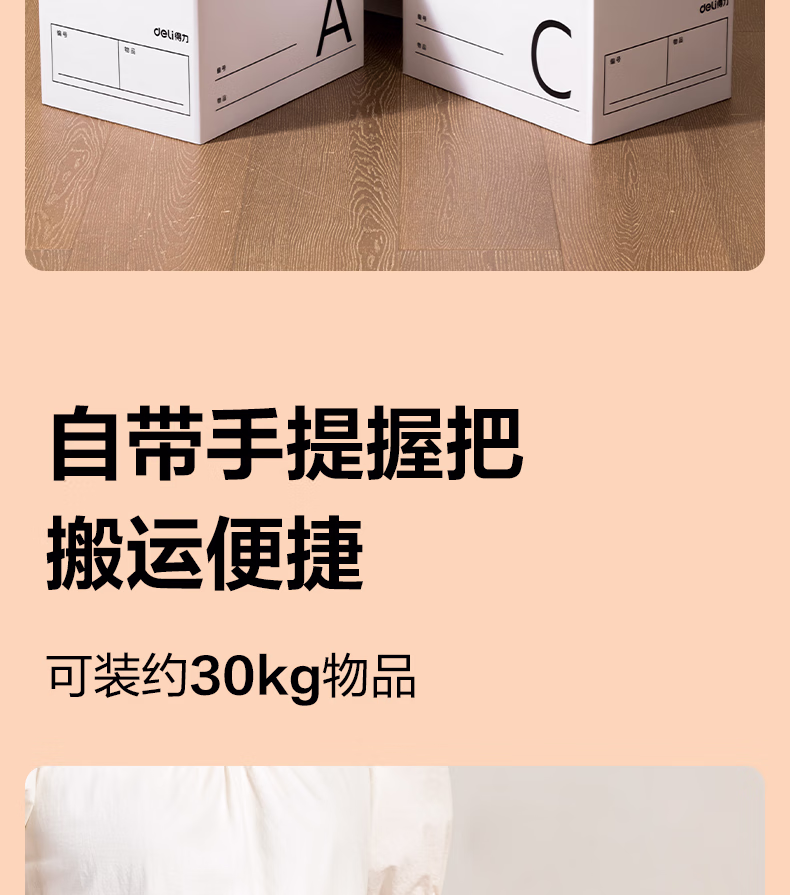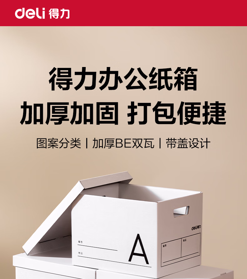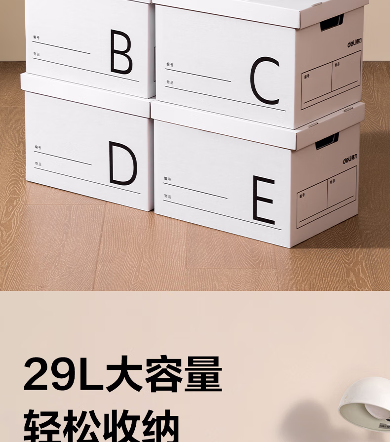 包装清单  :   得力(deli)搬家纸箱 加厚小号书箱收纳纸箱子整理箱打包箱书籍收纳神器38.5*28*27cm【字母分类-5个装】PK148