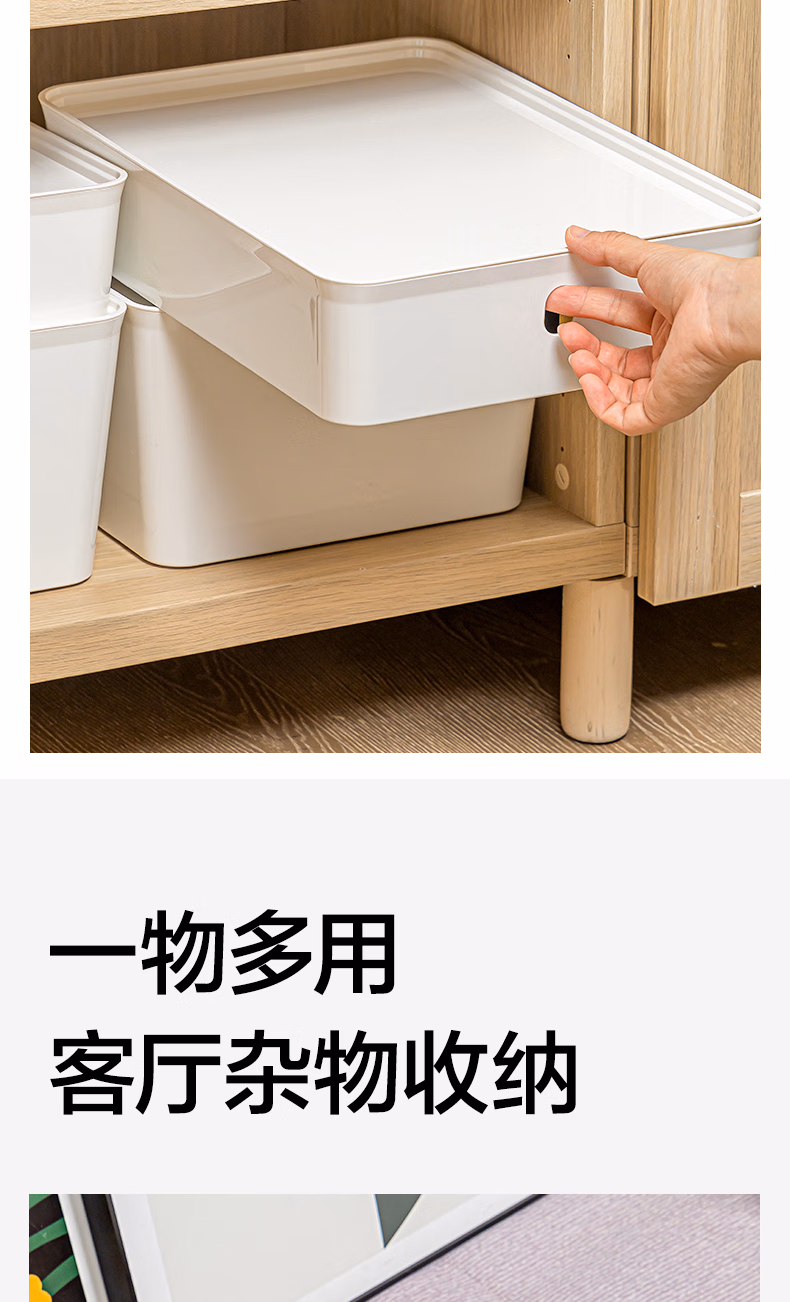 包装清单  :   得力(deli)带盖收纳盒 杂物零食玩具化妆品文具桌面储物盒收纳箱 中号4.6L