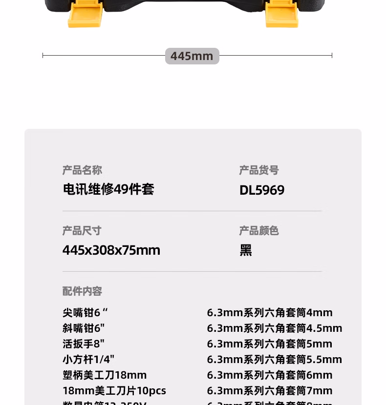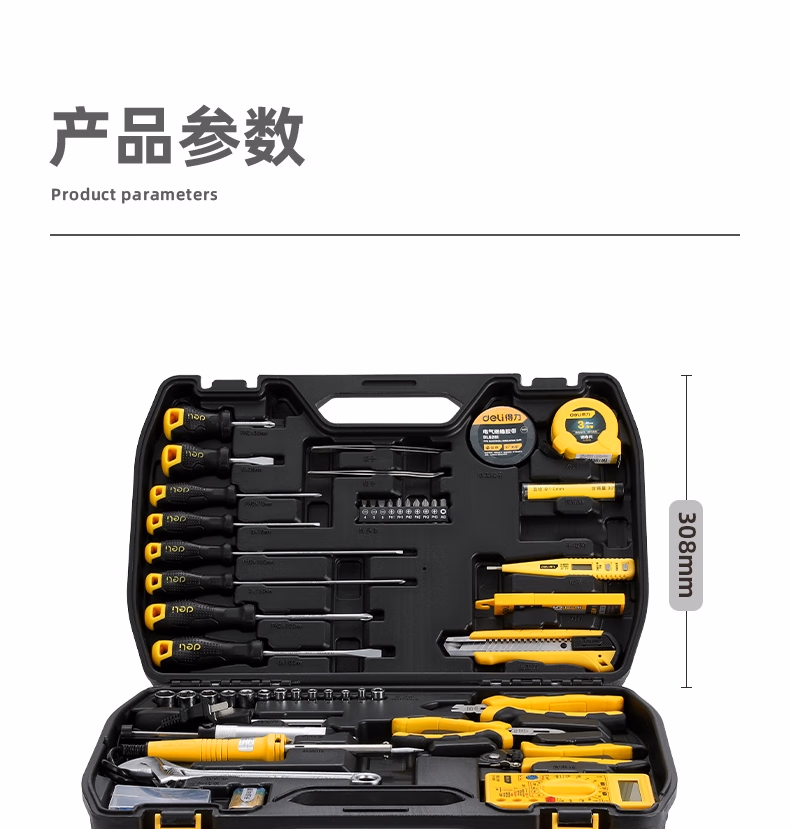 包装清单  :   得力(deli)家用多功能工具箱套装手动工具组套电工维修家用49件 DL5969