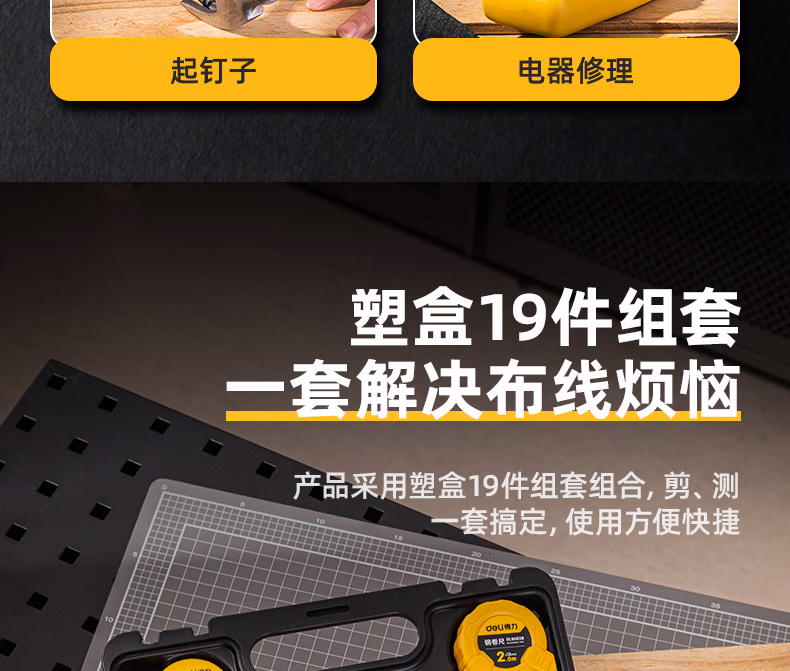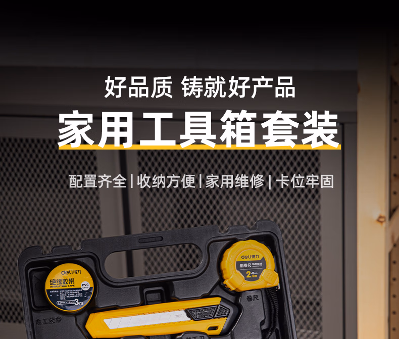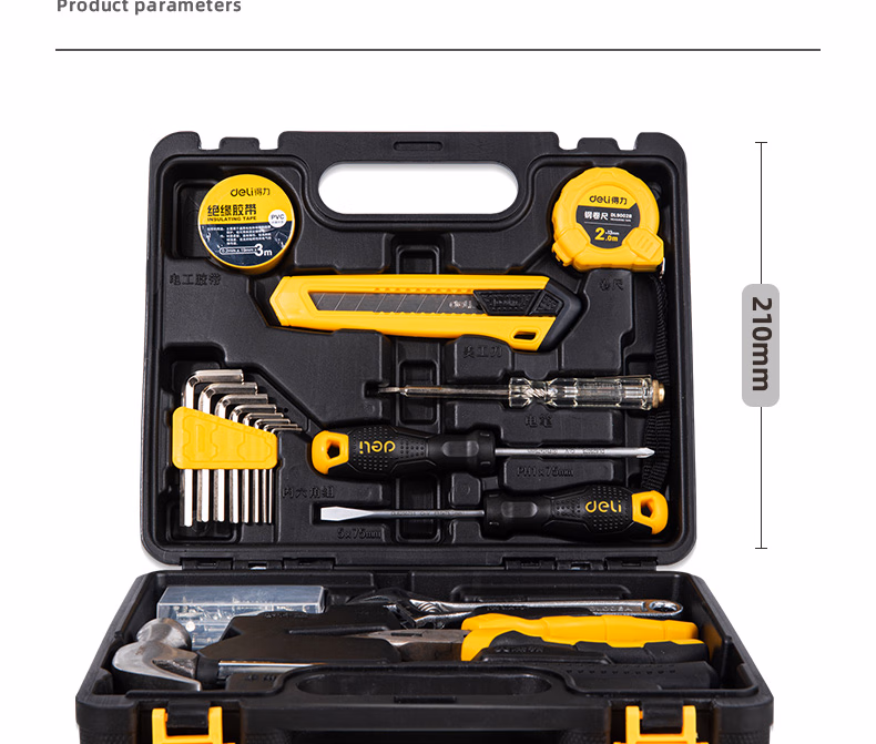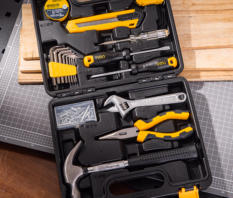 包装清单  :   得力(deli)家用工具箱套装布包组套电工木工维修五金手动工具18件套
