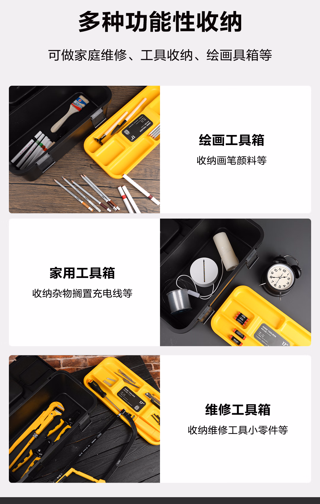 包装清单  :   得力(deli)家居工具箱颜值空箱塑料收纳箱多功能五金收纳盒17英寸 DL432817