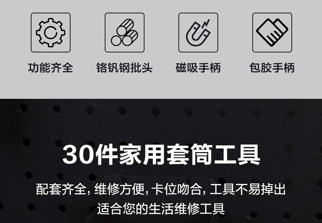 包装清单  :   得力(deli)棘轮螺丝刀组套家用套筒套装螺丝批组套30件套 DL1130