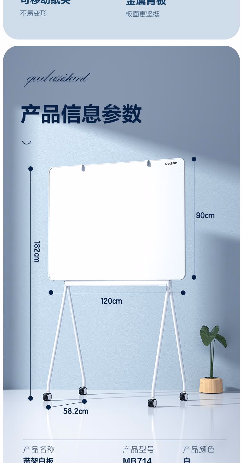 包装清单  :   得力(deli)120*90cm芭蕾支架式白板 超窄边框稳固型 会议办公教学家用可移动磁性白板黑板写字板