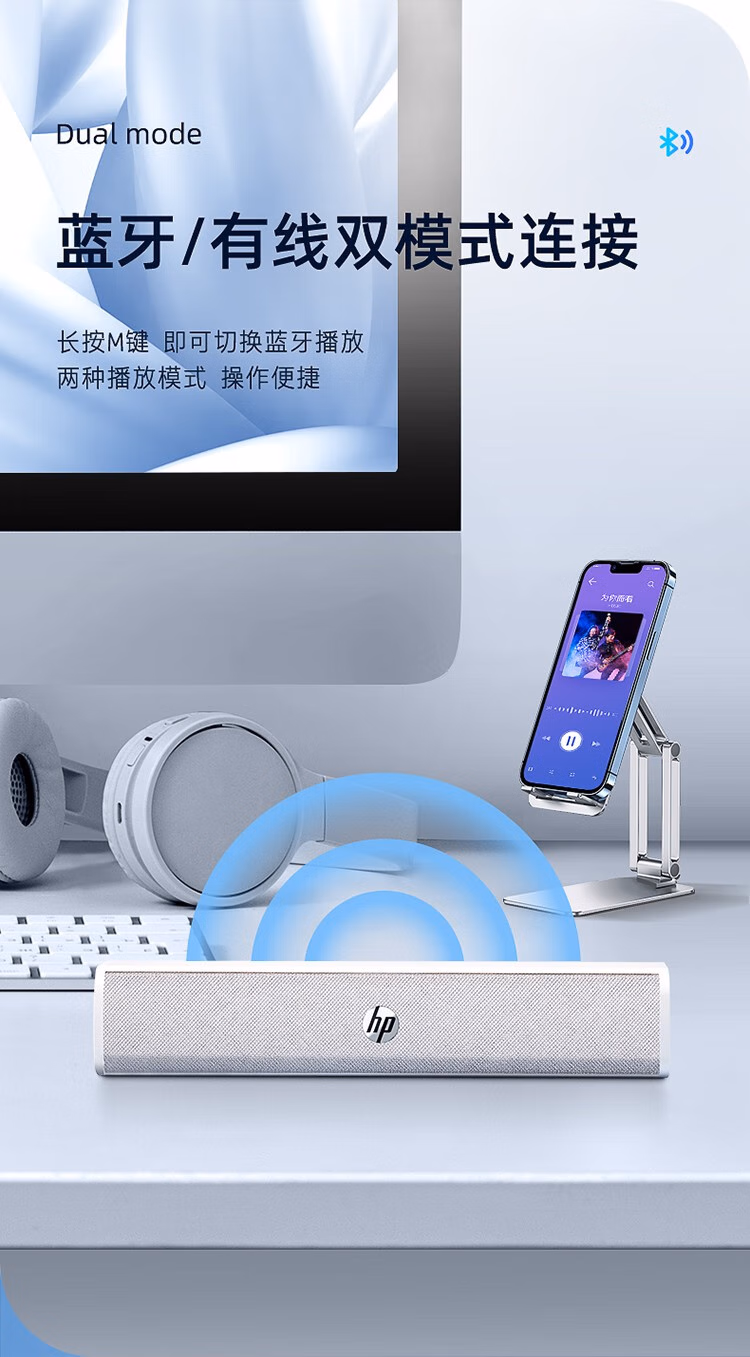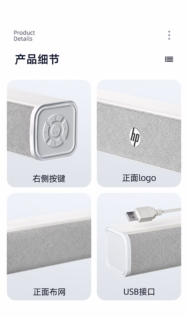 包装清单  :   惠普(HP)WS1Pro电脑音响长条桌面音箱有线蓝牙双模低音炮家用立体环绕声