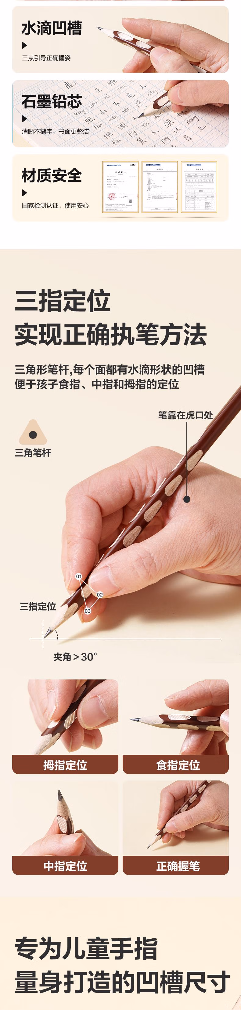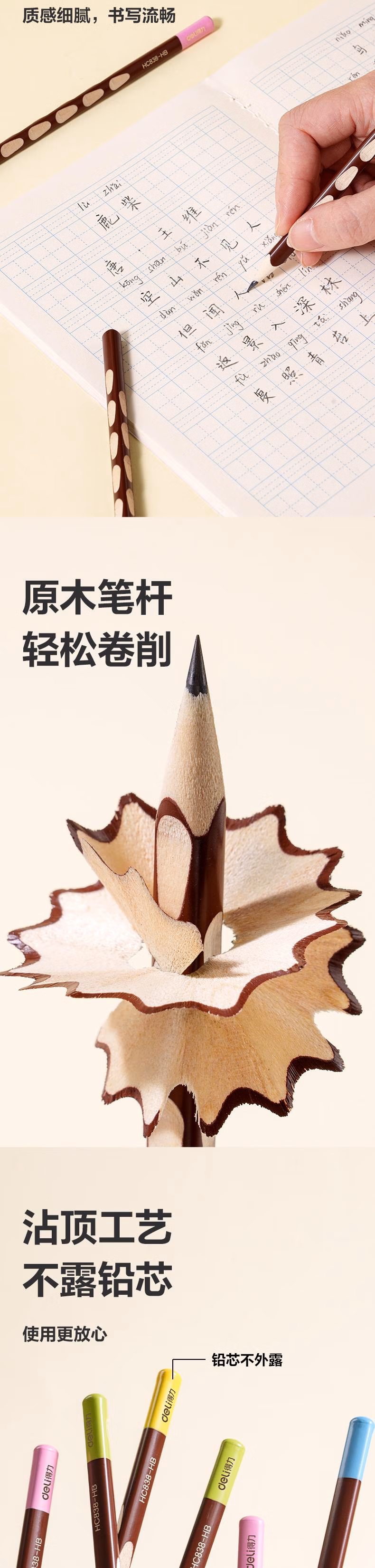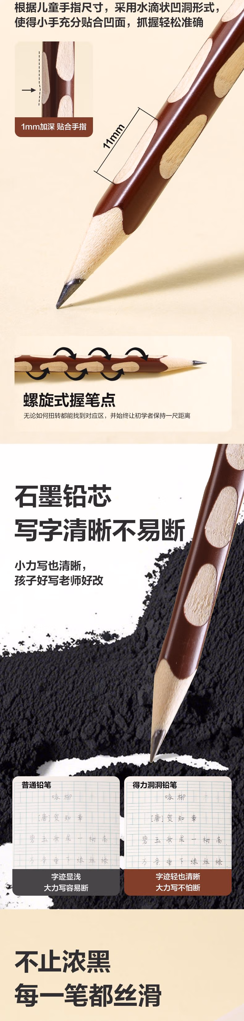 包装清单  :   得力(deli)12支洞洞笔书写铅笔2B铅笔三角杆易抓握儿童矫姿铅笔学生练字笔礼物HC838-2B学生开学礼物