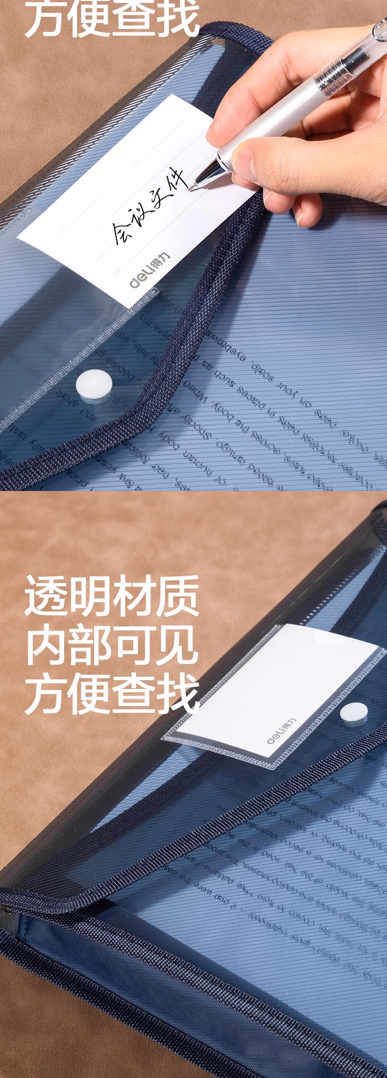 包装清单  :   得力(deli)A4按扣学生桌面包边文件袋 大容量试卷收纳开学学科分类办公用品塑料防水 学习办公用品PP305_黑