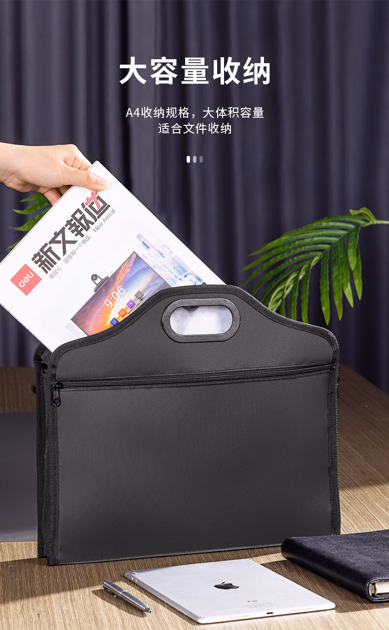 包装清单  :   得力(deli)办公公文包 经典加厚商务收纳男女职业文件袋事务包/文件包 手提袋资料袋 便携黑色