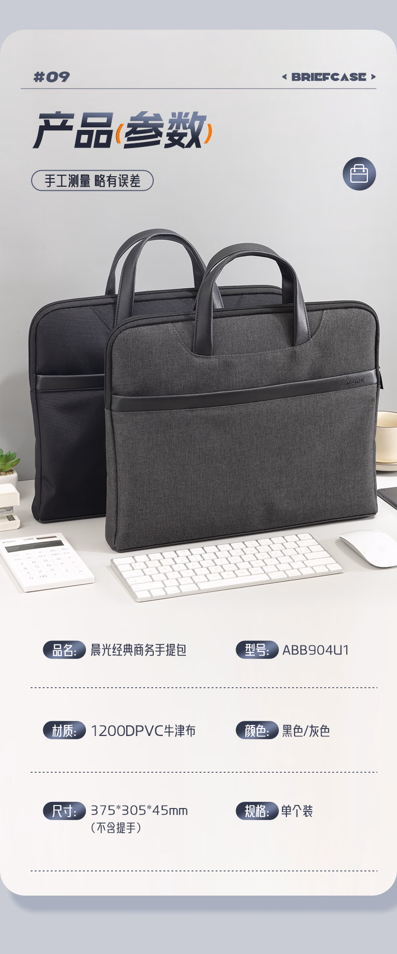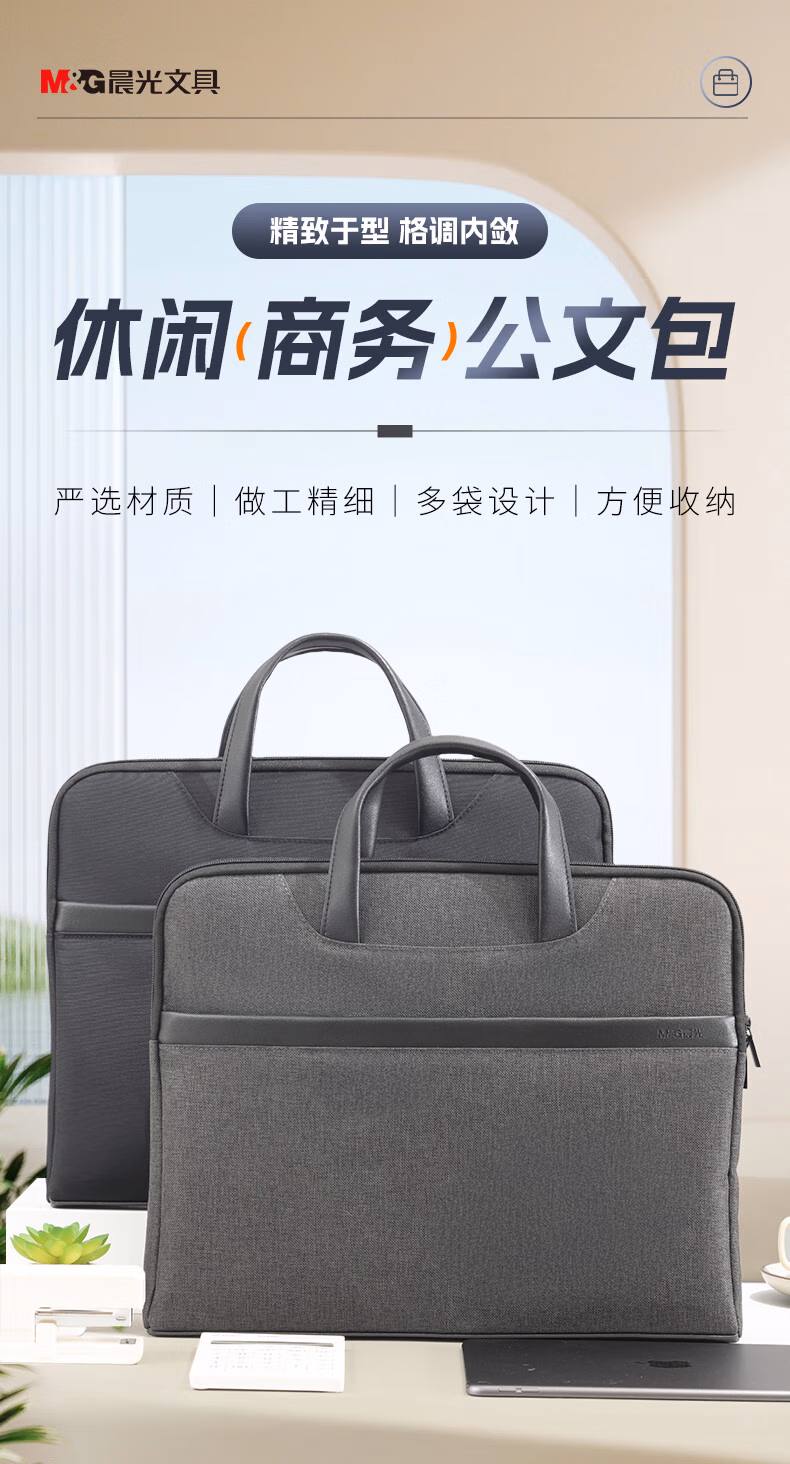 包装清单  :   晨光(M&G)文具 事务包公文包商务男女职业文件袋涤纶手提包文件包资料袋 灰色ABB904U1K