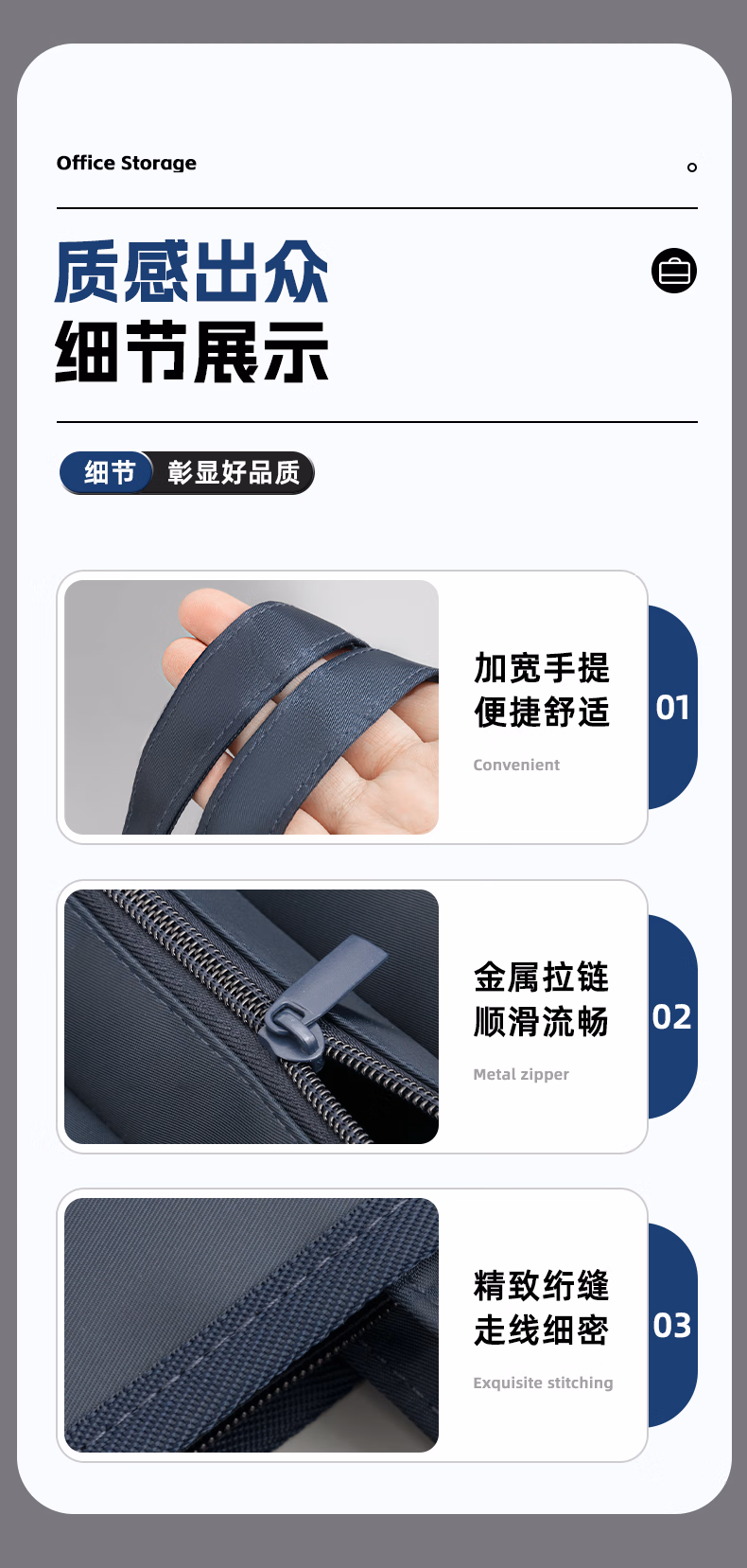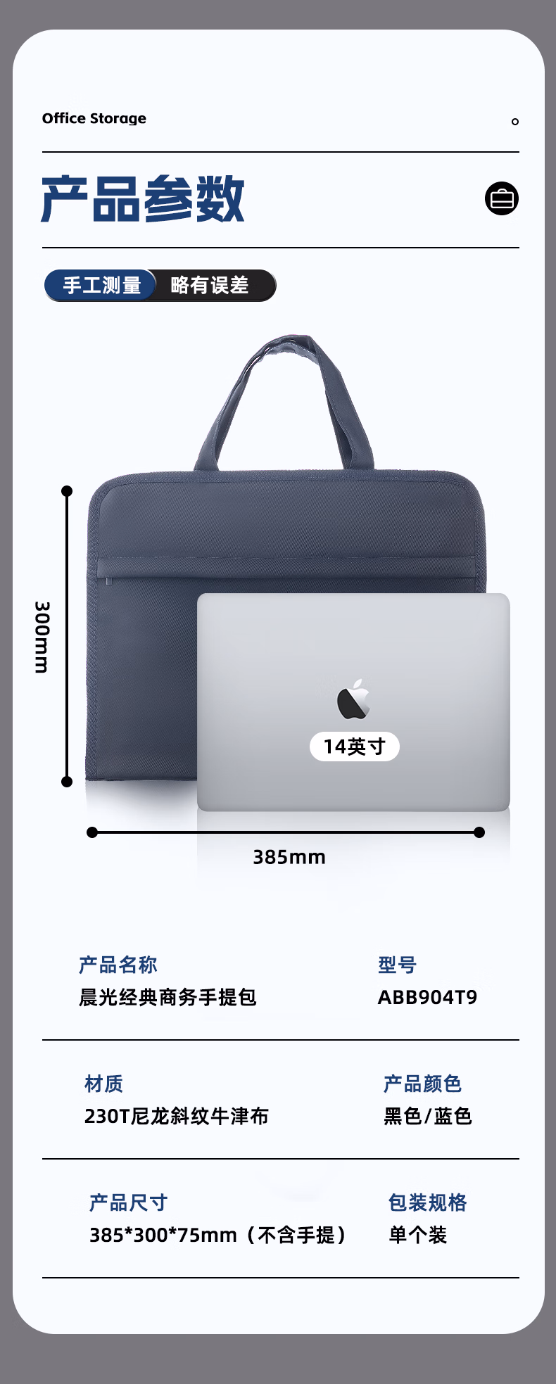 包装清单  :   晨光(M&G)文具 办公加宽手提袋会议包事务包文件包 加厚大容量商务拉链袋电脑公文包 蓝色ABB904T9B