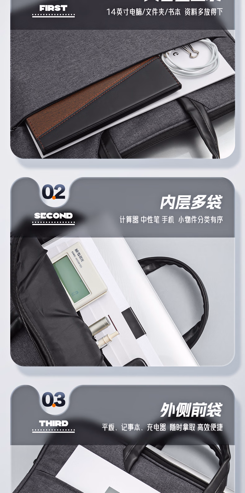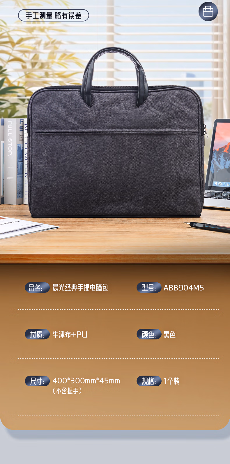 包装清单  :   晨光(M&G)文具A4经典纹手提会议包 事务包 大容量商务包电脑包 牛津布+pu材料 单个装 ABB904M5