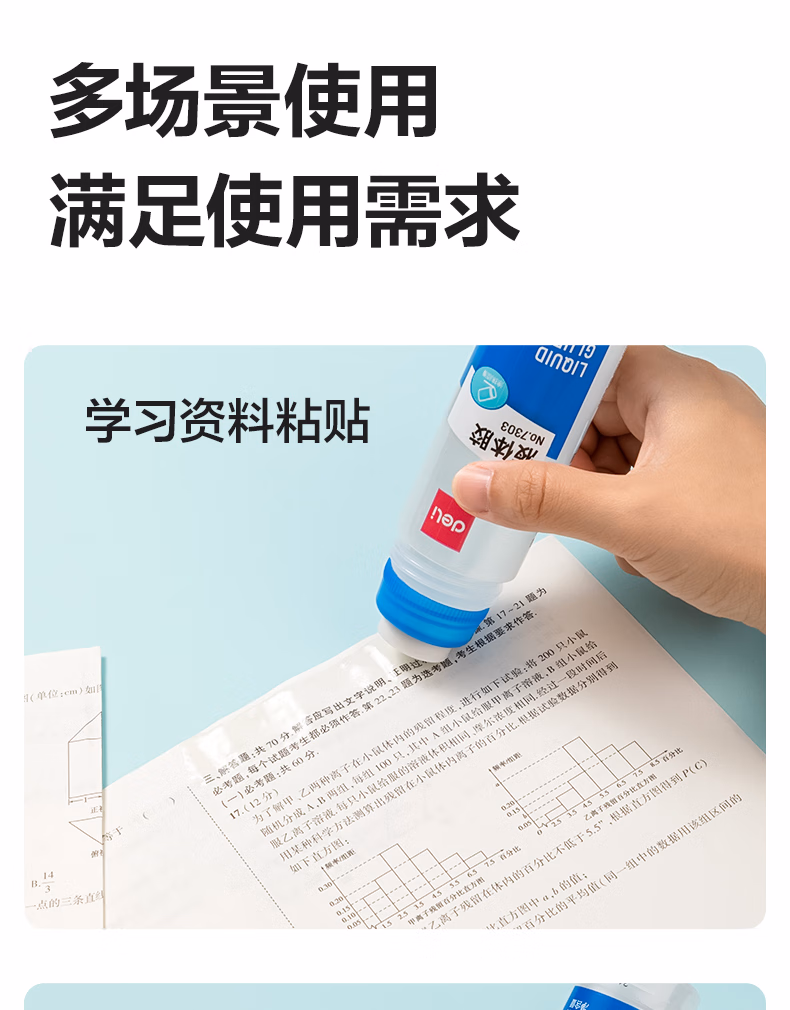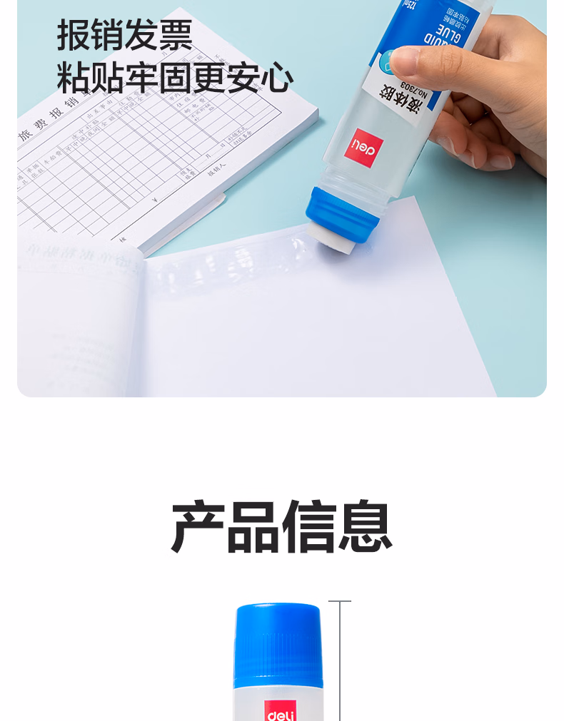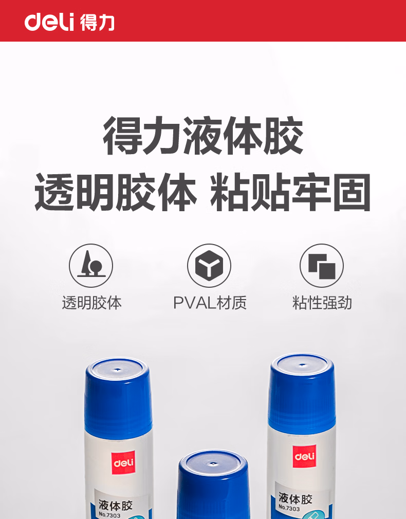包装清单  :   得力(deli)125ml高透明胶水 可水洗高粘液体胶 手工DIY学生文具 开学必备学习用品 单支凑单 办公用品 7303