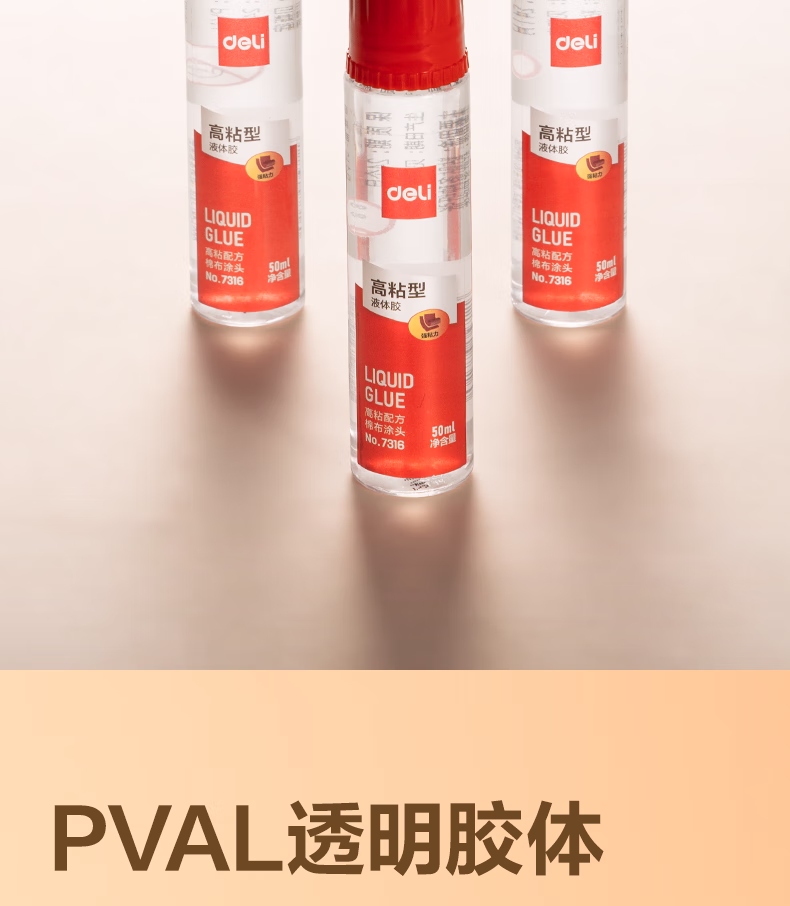 包装清单  :   得力(deli)50ml强粘型高透明胶水 海绵胶头粘性升级 商务办公专用液体胶 1支凑单 办公用品 7316