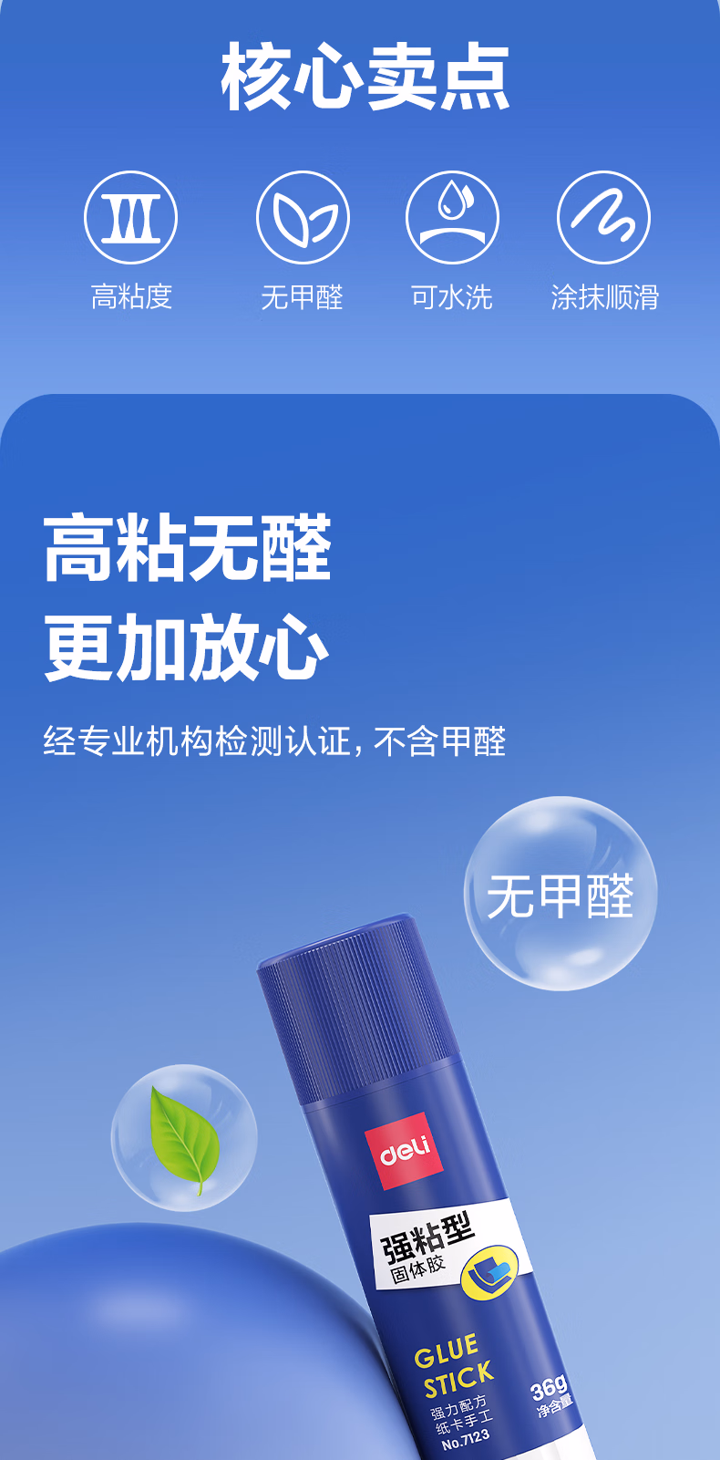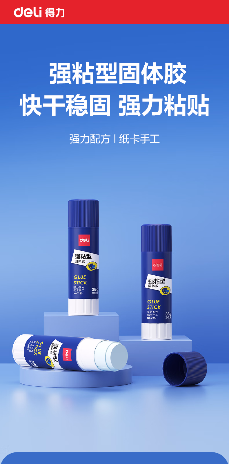 包装清单  :   得力(deli)21g强粘性PVP固体胶水 无甲醛配方 快干强力胶棒 学生文具 单支凑单 办公用品 7122