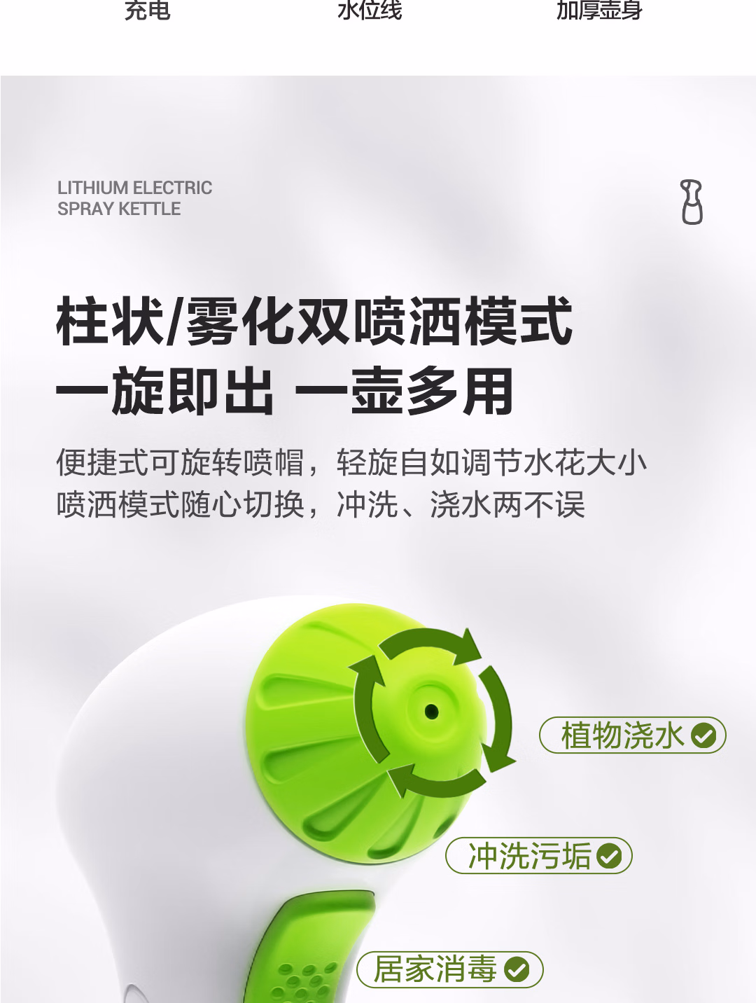 用途  :   园艺电动喷水壶2L浇花小型喷雾器自动喷水壶 酒精消毒保洁洗车