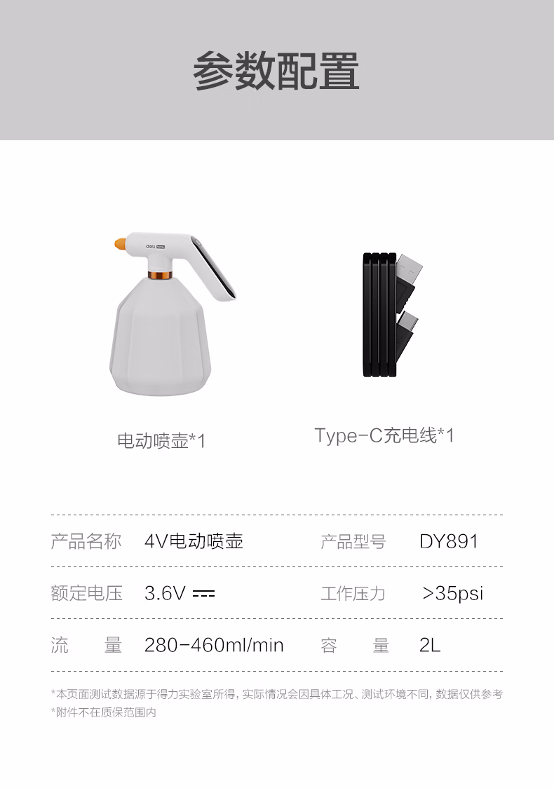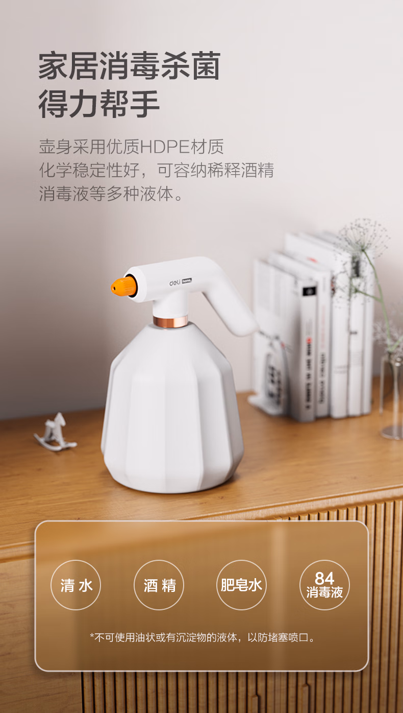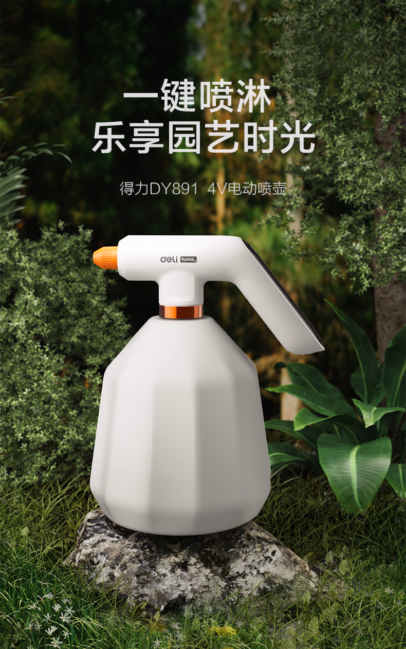 包装清单  :   得力电动喷壶浇花喷洒器小型消毒喷雾器家用清洁喷水壶2L