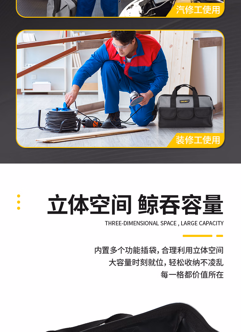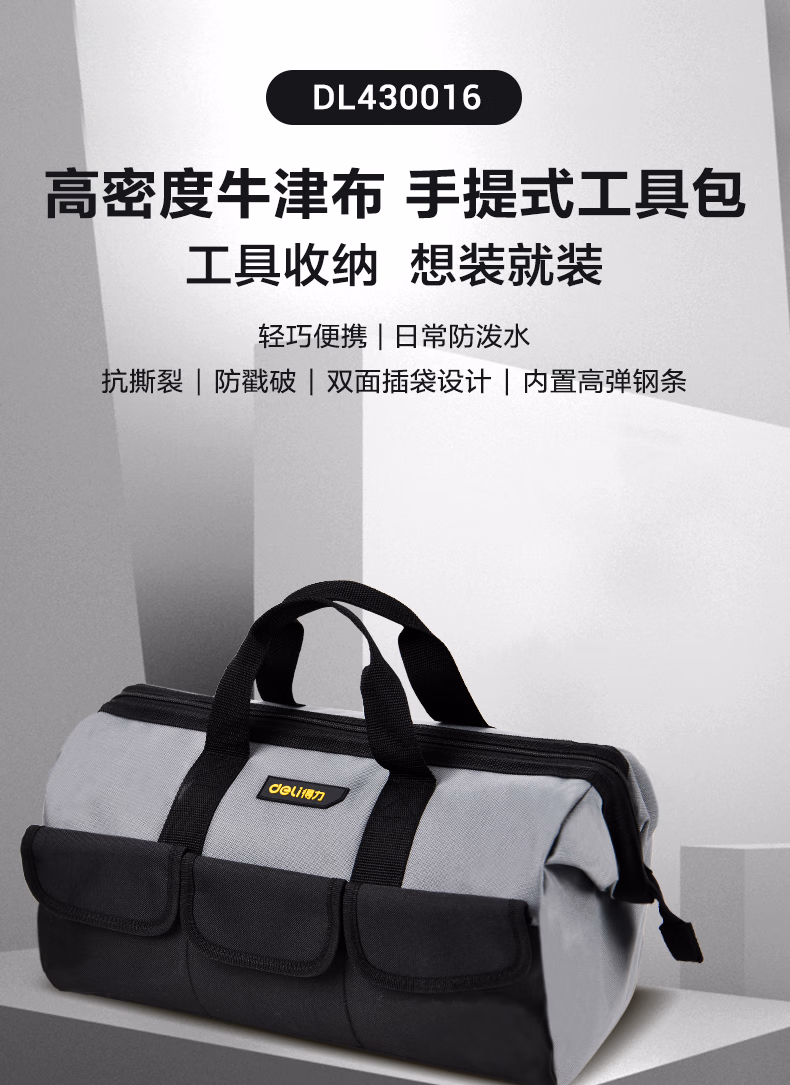 包装清单  :   得力(deli)16寸工具包多功能加厚三层手提包电工维修大容量收纳便携工具布包