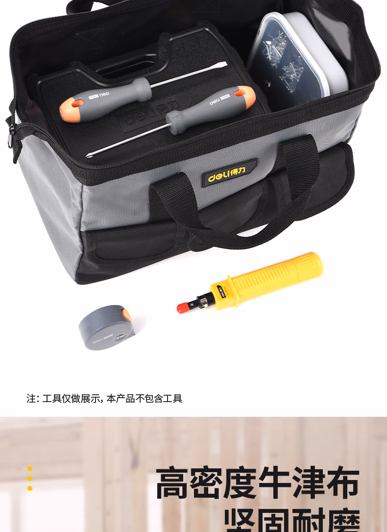 包装清单  :   得力(deli)18寸工具包多功能加厚双层手提包电工维修大容量收纳便携工具布包