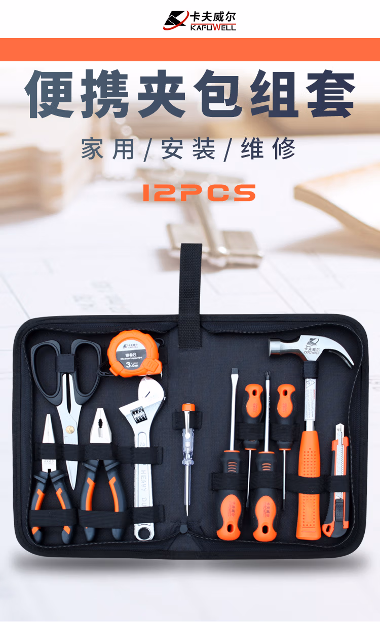 包装清单  :   卡夫威尔家用维修工具箱套装扳手五金螺丝刀电讯汽机修物业电工 H3606B