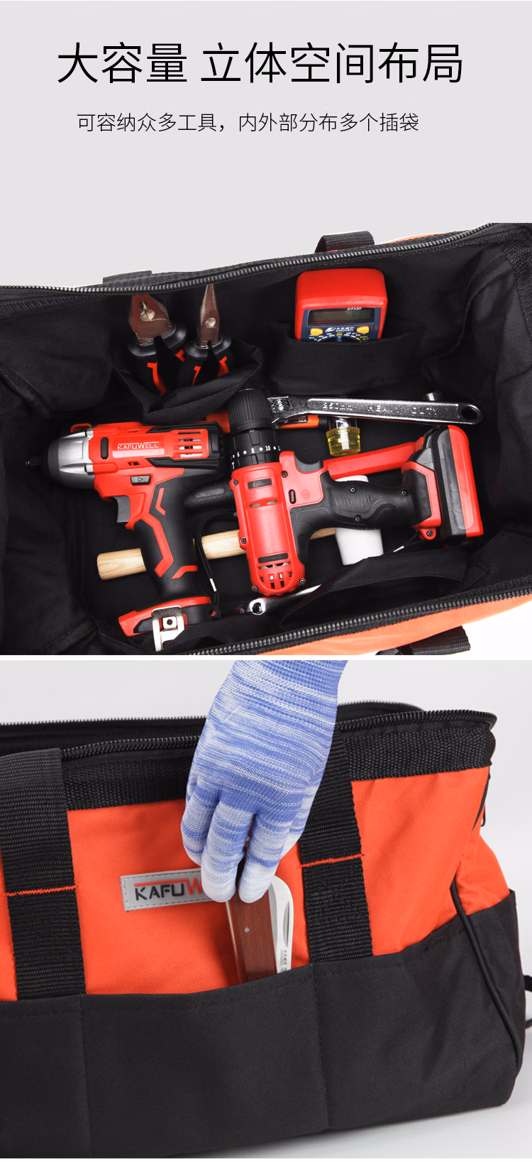包装清单  :   工具包 电工收纳包 防水牛津布手提包 电动工具电钻挎包 PK4314B